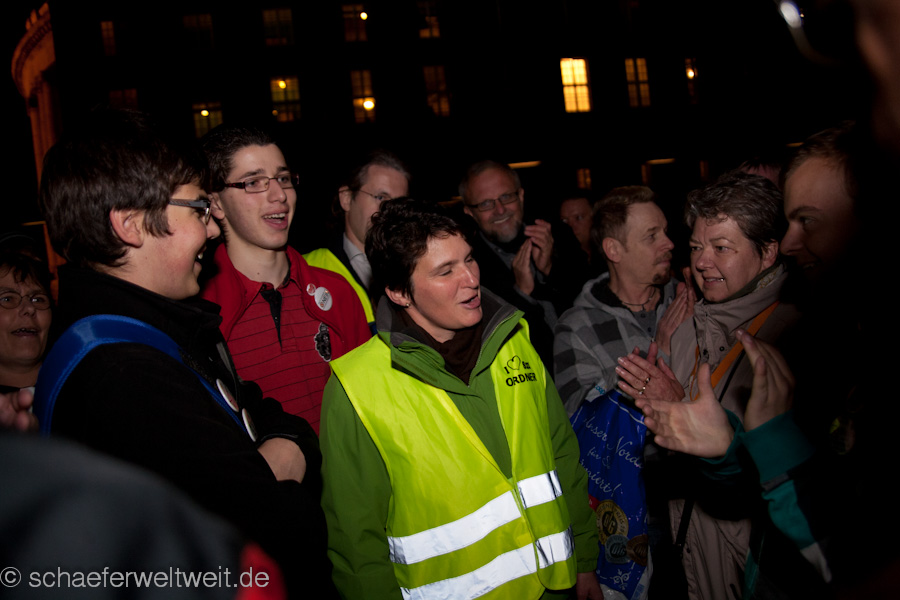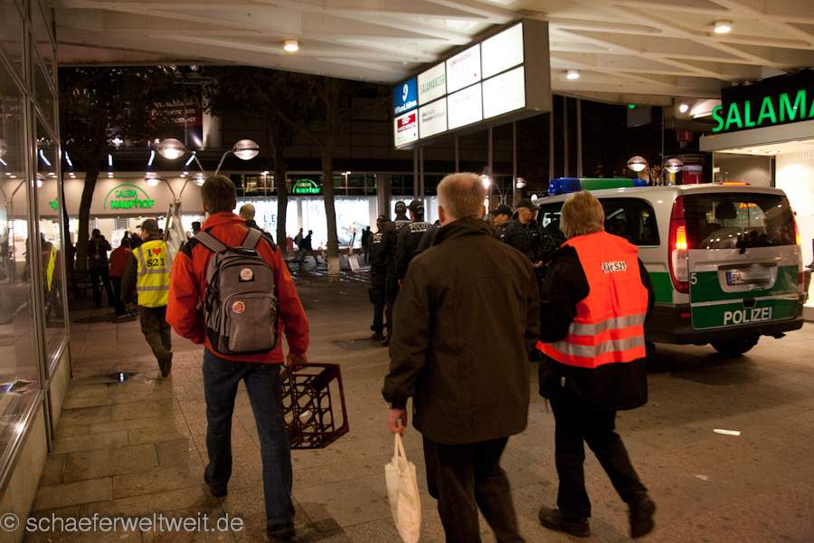 Teilweise entstanden hitzige verbale Auseinandersetzungen bei denen manchmal der eine, manchmal der andere, jeweils der anderen Partei vorwarf Filme oder Bilder erstellt zu haben. Teilweise wurde getrommelt, teilweise geschrien, es war nicht mehr klar erkennbar welche Partei da wen anschreit oder wer gerade verbal angreift. (Körperliche Angriffe sah ich nicht)