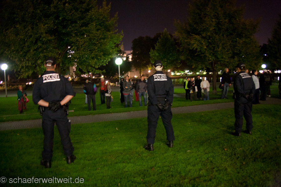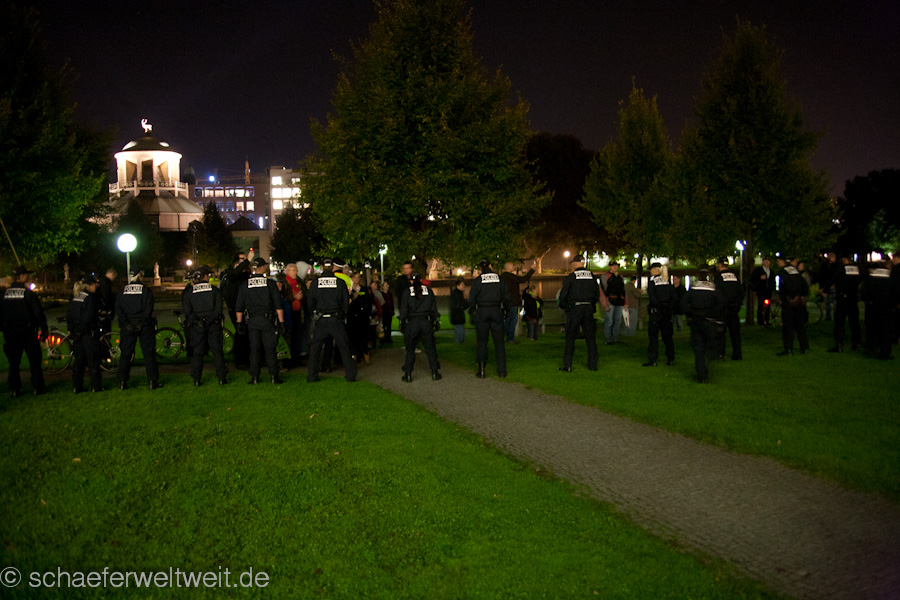 Da ich hier (Parkschützerforum Anm. d. red.) schon mal ein bisschen Quer gelesen habe möchte ich ein paar Worte zur IG-Bürger Aktion verlieren. Dabei möchte ich darauf Hinweisen, dass meine Eindrücke wie die eines Jeden anderen immer nur den eigenen Eindruck wieder geben können. Ich kann auch immer nur an einer Stelle gleichzeitig sein. Sprich – aus einer anderen Position raus kann einem eine Situation immer ganz anders vorkommen.
