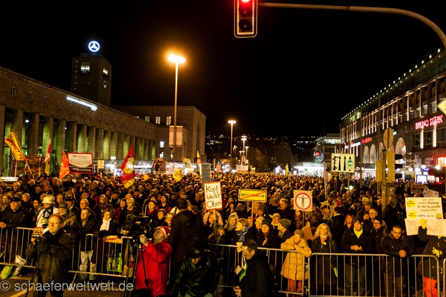 Auch am 09.12.13 trafen sich vor dem Stuttgarter Kopfbahnhof wieder tausende Menschen um für einen vernünftige Verkehrsinfrastruktur in der Landeshauptstadt einzustehen. Natürlich genau dort wo sie den richtigen Ort für ihre Demonstration sehen versammelten sie wieder und haben nicht vor dies zu ändern. Auch das Verwaltungsgericht Stuttgart bestätigte sie natürlich in ihrem Versammlungsfreudigkeit und der Örtlichkeit auf dem Arnulf-Klett-Platz in Stuttgart.