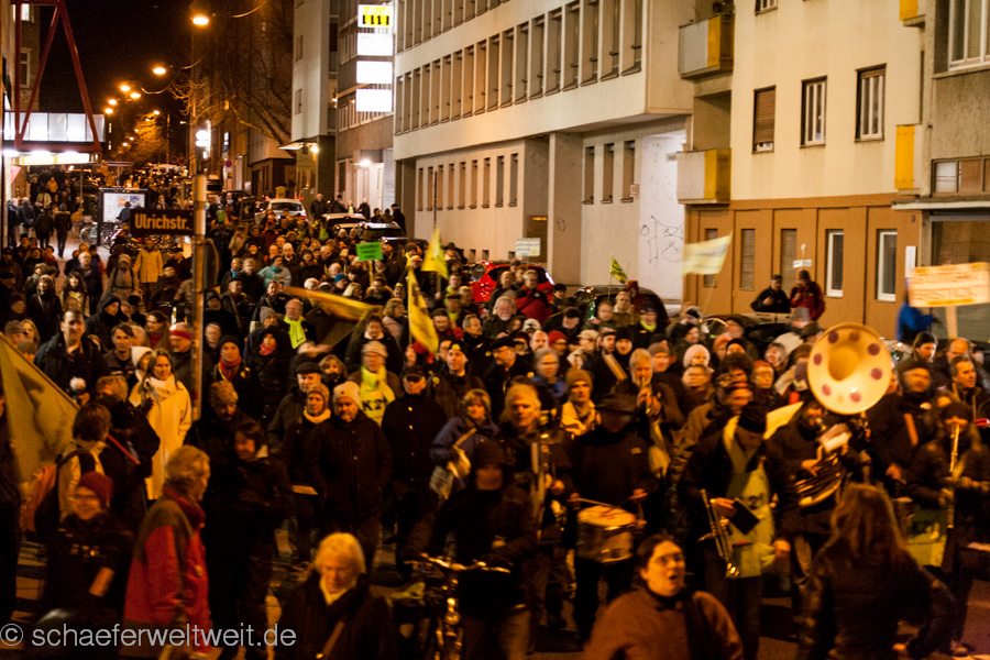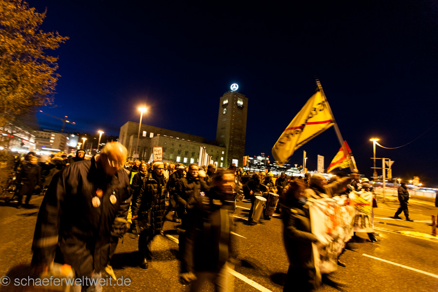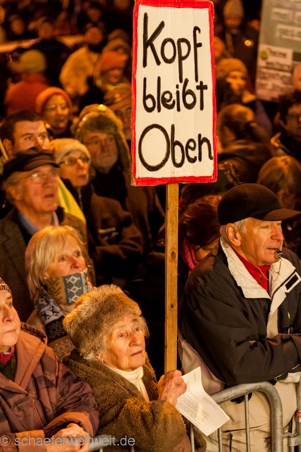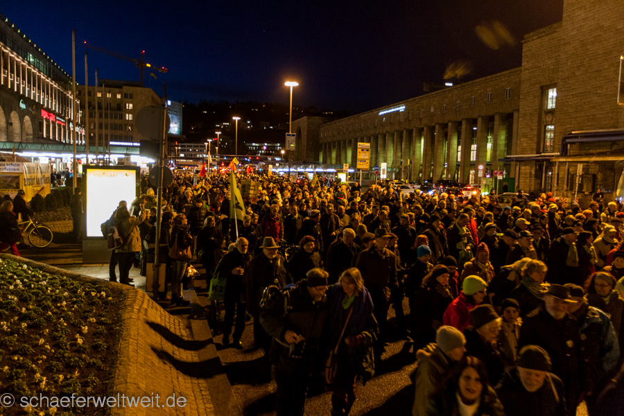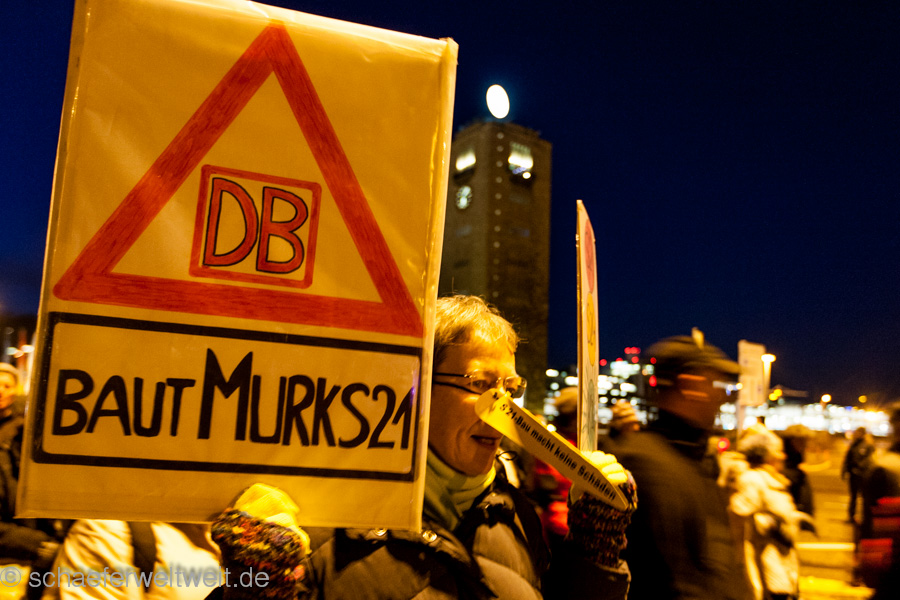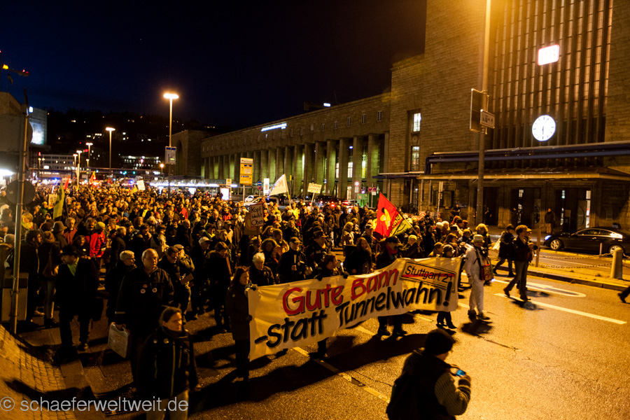 Bei der ersten Demonstration gegen Stuttgart 21 nach dem Austritt der größeren Parteien und Verbände aus dem sog. „Aktionsbündnis“ war eine große Aufbruchstimmung und auch eine gewisse Erleichterung zu spüren. Dies spiegelte sich nicht nur in einer größeren Teilnehmerzahl wieder, sondern auch in einer guten allgemeinen Stimmung. Auch die Rede von Dr. Norbert Bongartz und Dr. Eisenhart von Loeper (Sprecher des AB) befasste sich mit diesem Thema. Ulrich Ebert, (Ingenieure22 und Juristen zu S21) griff dagegen in einer lesenswerten Rede, die allgemeine Situation zur Zeit auf und brachte die wesentlichen Entwicklungen bei Stuttgart 21 auf den Punkt. Impressionen der Demo: