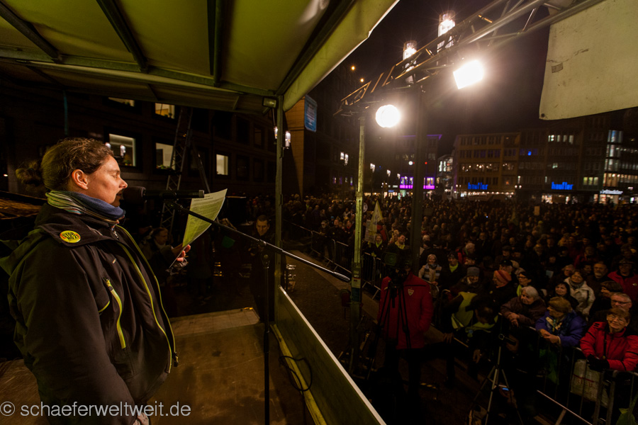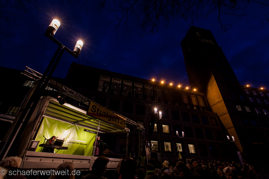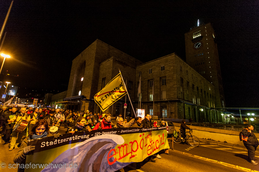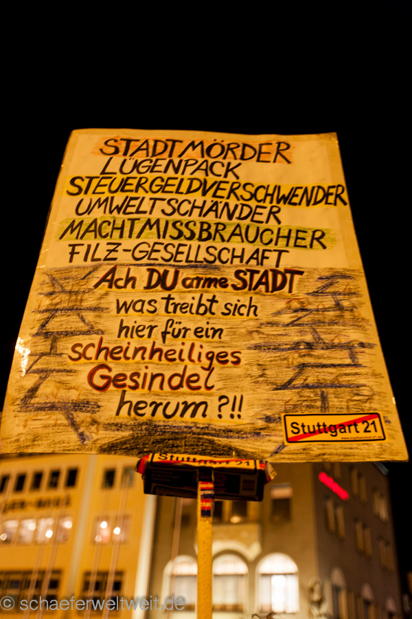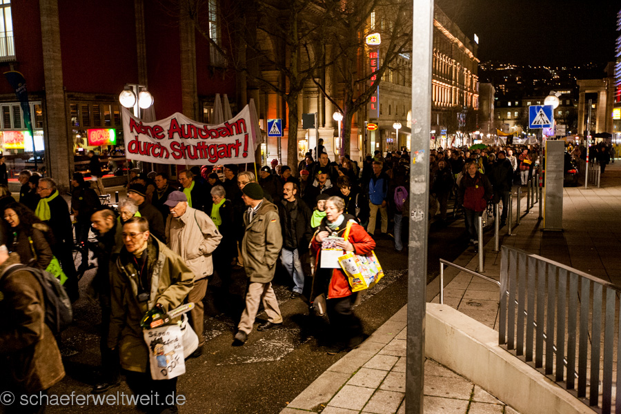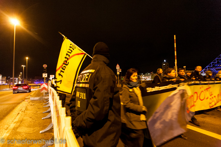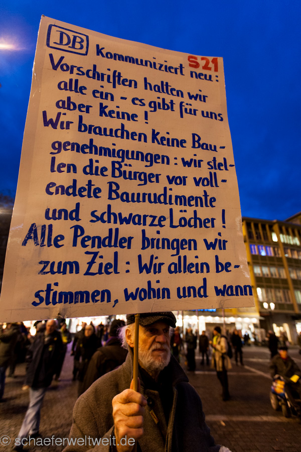 Die 209. Montagsdemo fand am 10.02.14 auf dem Marktplatz in Stuttgart statt. Nachdem die Demonstrationsroute dann zum Innenministerium führte, endete sie abrupt im „Nichts“ zwischen Wullesteg und Planetarium. Ein Teil der Demonstranten lief dann über die einzig mögliche Route – eine völlig verdreckte Baufläche kurz vor dem Innenministerium – zum Wullesteg. Ein anderer Teil blieb stehen und forderte einen angemessenen Demonstrationsweg. Ein dritter Teil ging zurück zum offenen Mikrofon und auch direkt zurück zur Baubrache am HBF.
