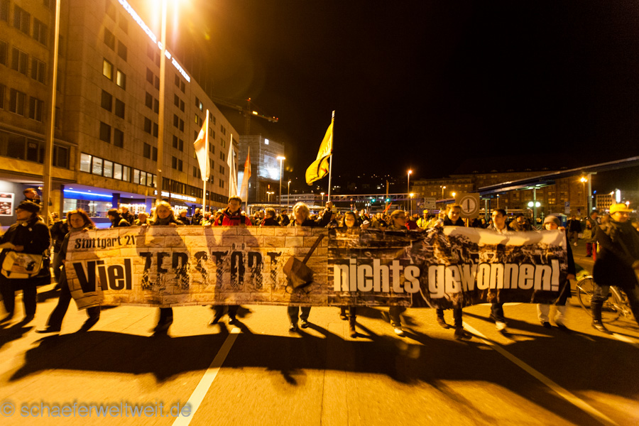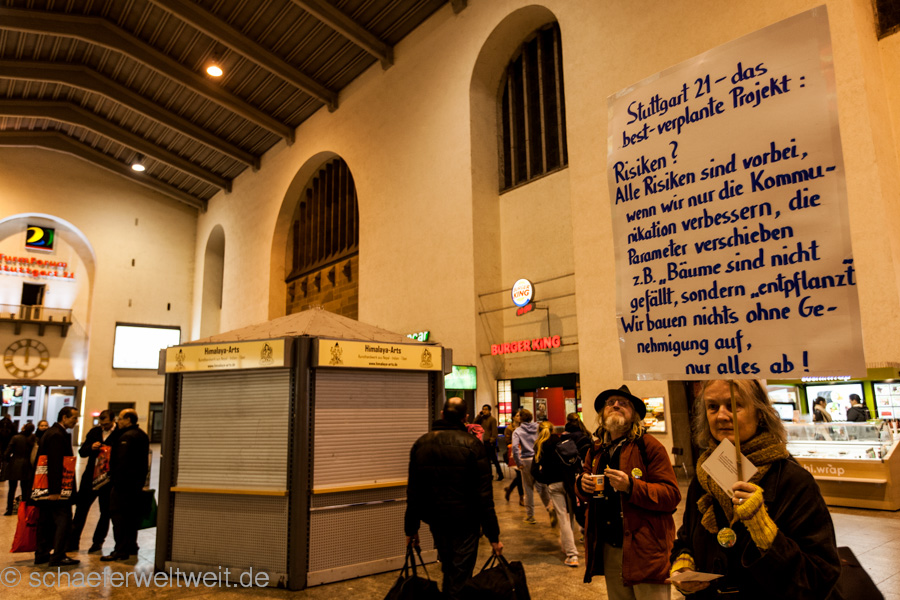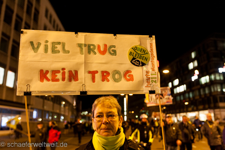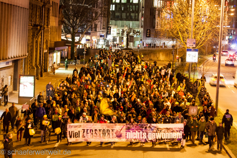 Am 24.02.2014 demonstrierten auf dem Stuttgarter Marktplatz viele Bürger zum 211ten mal gegen das Immobilienprojekt Stuttgart 21. Anschließend nahmen (auf Höhe Friedrichstraße 15) noch 733 Personen am Demozug vom Marktplatz zum Planetarium teil. Die Demonstration stand ganz im Zeichen der Info-Offensive für eine funktionsfähige Stadtbahn (link oder alternativ link) und gegen das Verkehrschaos das Stuttgart 21 unter anderem beim Stadtbahnverkehr mit sich bringen würde.