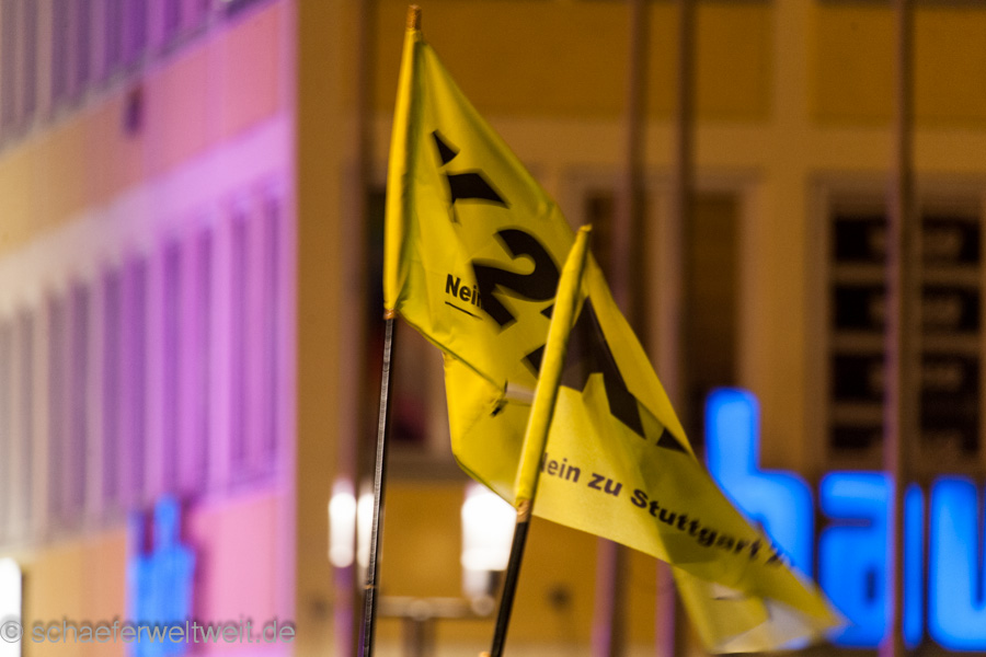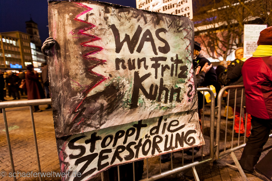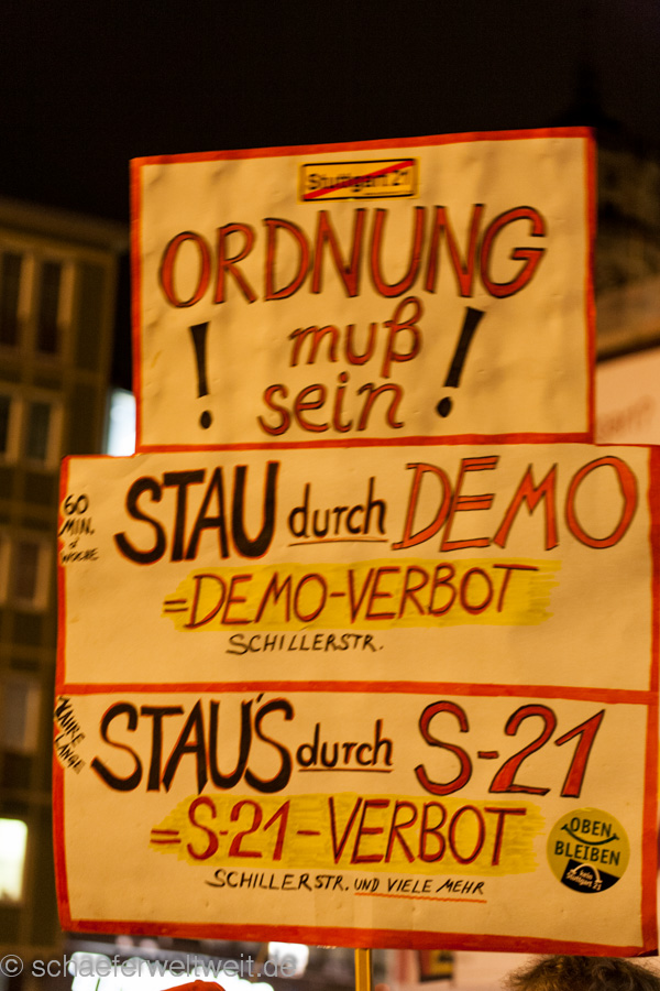 Nachdem die Demonstration gegen Stuttgart 21 diesen Montag wieder auf den Menschen leeren Platz vor dem Rathaus ausgewichen war, demonstrierten dort tausende Bürger gegen das Immobilienprojekt Stuttgart 21.