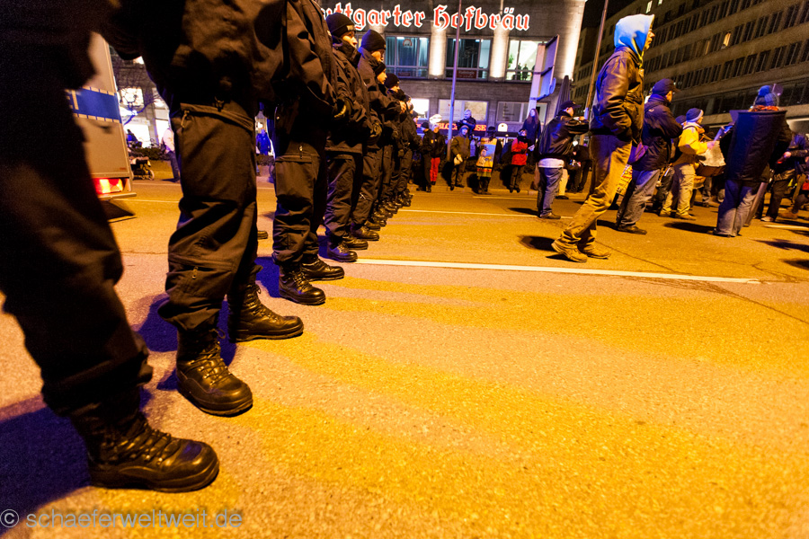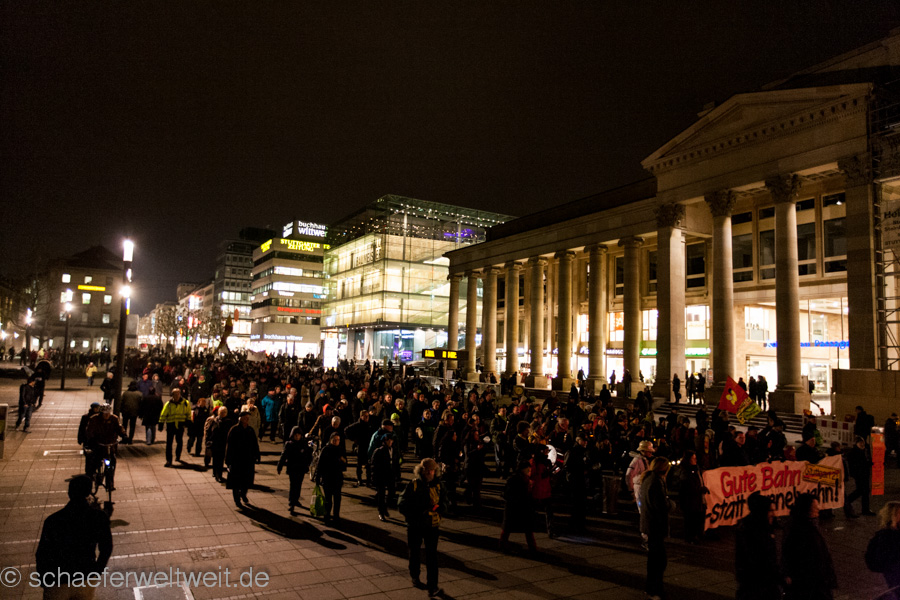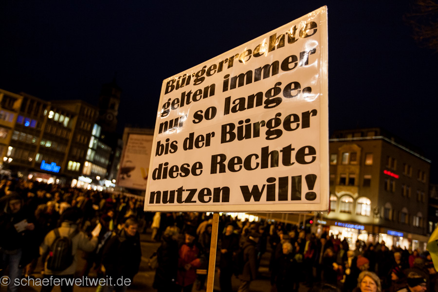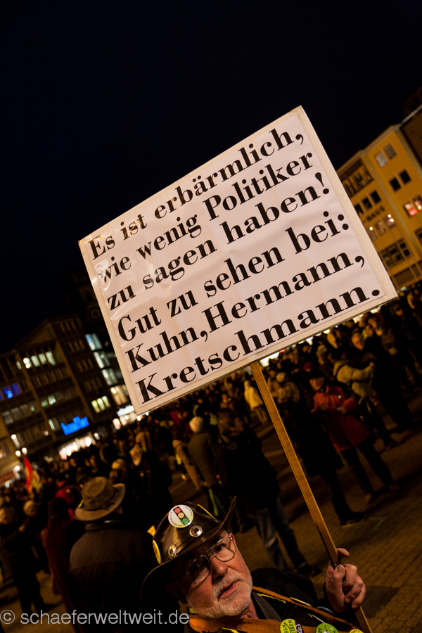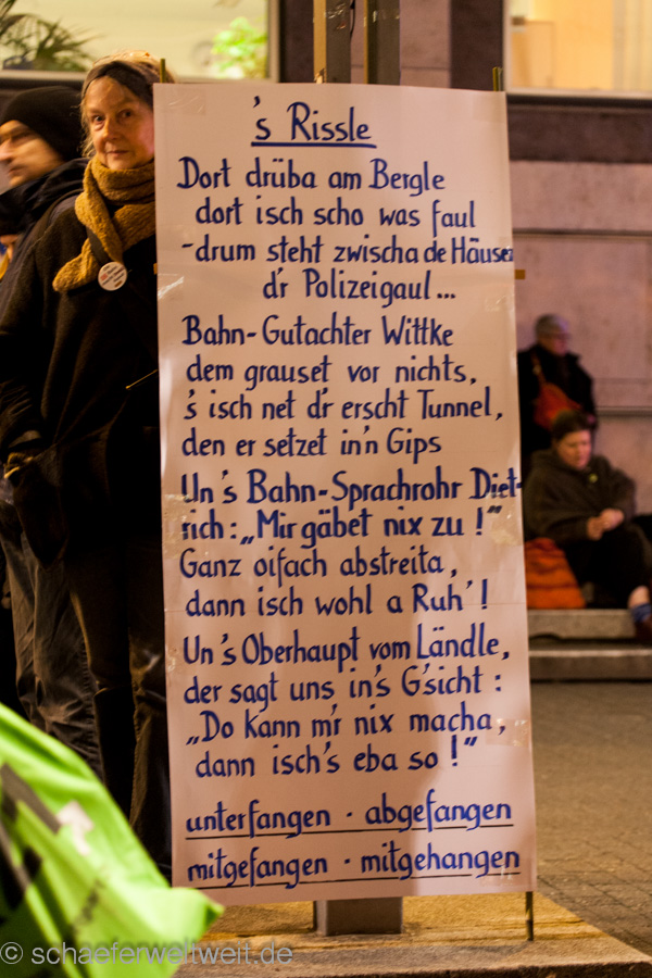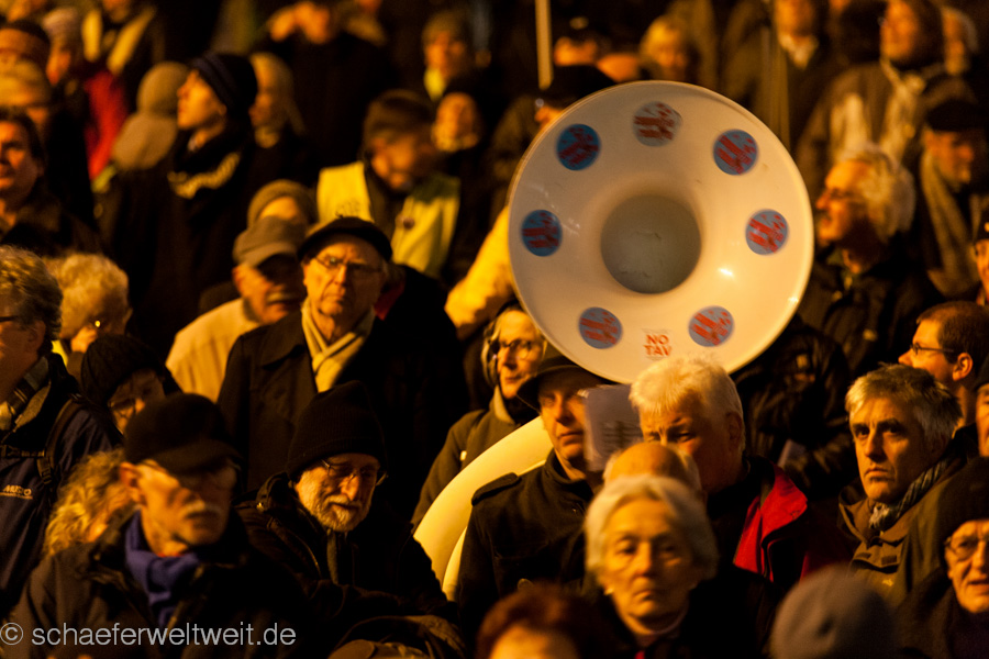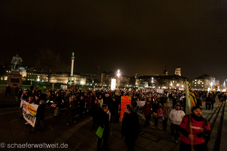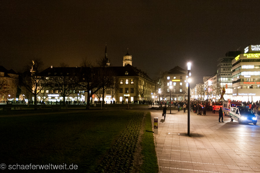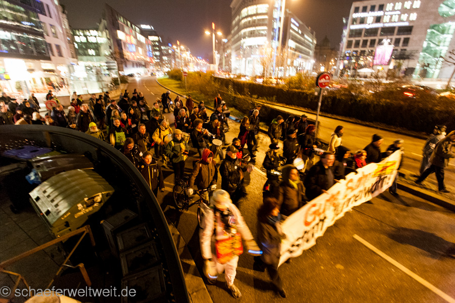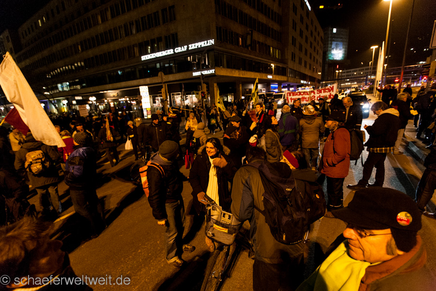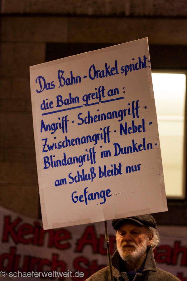 Nach den Reden von Peter Conradi und Winfried Wolf und ohne jegliche kulturellen Beiträge, zog die Demonstration in einem eindrucksvollen großen Zug zum Hauptbahnhof.