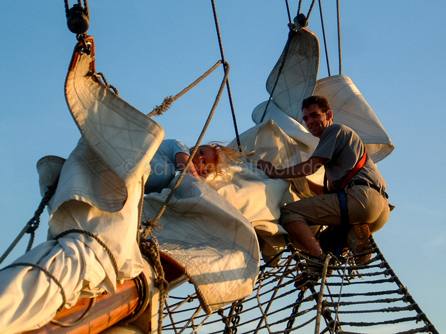 Die Fahrt war ein großes Erlebnis – nicht zuletzt weil eine Brigg wie die ASTRID nicht mit Motoren gesegelt wurde. Das bedeutet jeder der Mitreisenden war nötig um die Segel zu setzen und für die jeweiligen Manöver auszurichten. Genauso war es jeden Morgen nötig die Segel auszupacken und Abends wieder einzupacken. Neben diesen Jobs war aber selbst bei Windstille genug zu tun, und wenn es nur „Deck schrubben“ oder „Ankerwache über Nacht“ war.