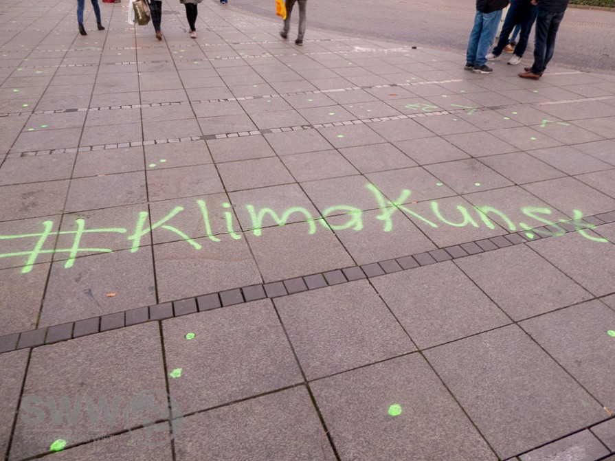 Wer zur Zeit durch die Königstraße läuft bemerkt es sofort – die Stadt hat plötzlich einen grünen Ausschlag bekommen. Städtische Schweinegrippe? Spontane Allergie gegen alles Grüne? Straßenvogelgrippe? Nein es ist eine Klima-Kunst-Kampagne zur 21. Weltklimakonferenz.