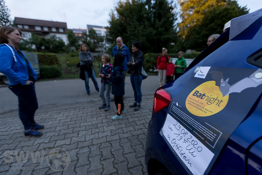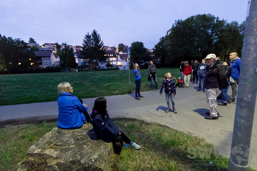 Wie schon mehrere Jahre veranstaltete der NABU in Deutschland wieder verschiedene Veranstaltungen (link) zur 24. Internationalen Fledermausnacht. Auch wenn die Hauptveranstaltung Corona bedingt ausfallen mußte, fanden sich ca. 40 Fledermaus interessierte in Ostfildern ein und konnten in zwei kleineren Gruppen nach Fledermäusen Ausschau halten.  Leider hatten die fliegenden Hauptdarsteller den Wetterbericht nicht so aufmerksam verfolgt und mit Regen gerechnet so das nur wenige flatternde Vertreter der 25 unterschiedlichen Fledermausarten Deutschlands (link) sich zeigten.