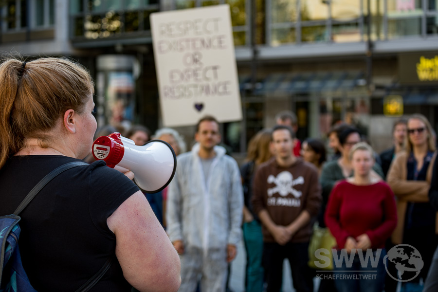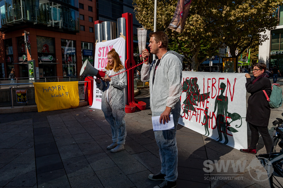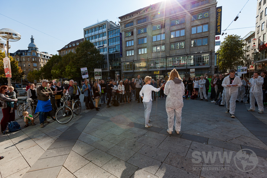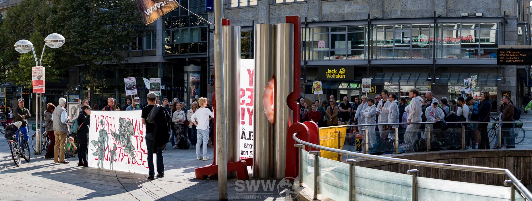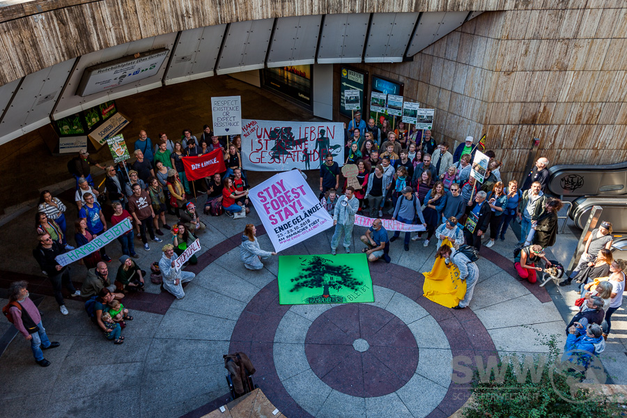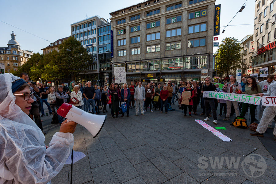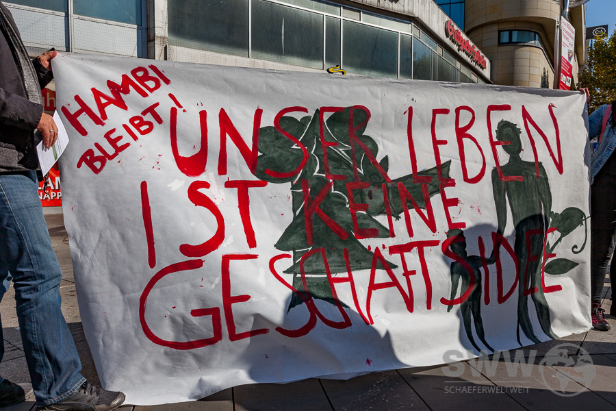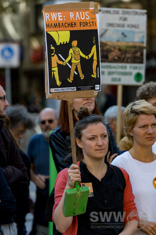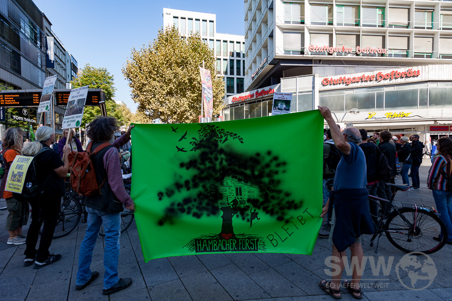Rund 150 Menschen trafen sich am 30.09.2010 in Stuttgart um sich für den erhalt des Hambacher Forst und das Ende des Braunkohleabbaus einzusetzen. Sie  wollen den Kohleausstieg nicht 2030, nicht 2040 – sondern jetzt! Die Klimakrise steht nicht vor der Tür, sie ist bereits da und gefährdet weltweit Menschenleben. Sie stehen für globale Gerechtigkeit und einen lebenswerten Planeten – für ein Klima der Gerechtigkeit!