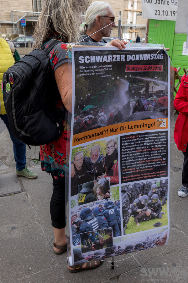 Am 30. September 2010 verlor die Stuttgarter Polizei im Mittleren Schlossgarten ihre Unschuld. Die vielen Bürger, welche sich bis dahin gegen das sinnlose Immobilienprojekt „Stuttgart 21“ gestellt hatten, waren gewöhnt, dass die Polizei sich stets fair und anständig verhalten hatte. Der Schock war daher sehr groß, als der Polizeiapparat blind, emotionslos und rechtswidrig dem Befehl von Stefan Mappus respektive Siegfried Stumpf, dem damaligen Polizeipräsident am Polizeipräsidium Stuttgart, folgte und mit roher Gewalt gegen die Demonstranten im Schlossgarten vorging. Die Bürger hatten sich versammelt, um gegen die ebenfalls rechtswidrigen Baumfällungen und für die Bäume im Mittleren Schlossgarten einzustehen. Ich möchte nun bis zum 30.09.2023 an diesen verhängnisvollen Tag erinnern.