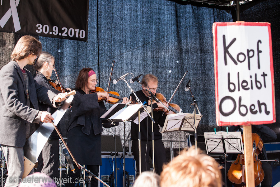 Ebenso wie das Wetter stellte sich das Umfangreiche Programm mehr als toll dar. Es sorgten Lokomotive Stuttgart, die TheologInnen gegen S21, das Ensemble „Purpurea“ (mit Katrin Scheytt, Angela Pastor, Thomas Gehring, Zoltan Paulich), das Mendelssohn Streichquartett, Dieter Reicherter, Lebenslaute „Süd“ (begleitet vom Ensemble Purpurea und Daniel Sissenich), Guntrun Müller-Enßlin, Flamenco La Rondeña (mit Alexandra Simón Rateike, Rob