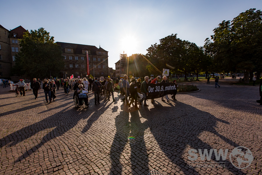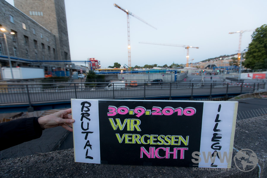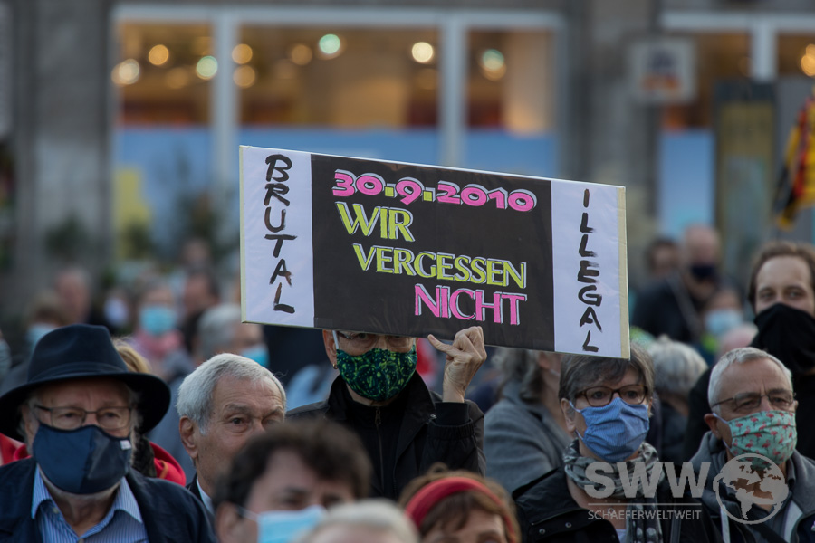 Der 30.09.2010 wurde in Stuttgart als „Schwarzer Donnerstag“ bekannt, als vor zehn Jahren hunderte Bürger im Alter von 10 bis 90 Jahren bei einem rechtswiedrigen Polizeieinsatz im Mittleren Schlossgarten während Demonstrationen verletzt wurden. Neben der Tatsache, dass sich die Menschen damals mit massiver Polizeigewalt konfrontiert sahen, erregte auch die Tatsache Aufsehen, dass nicht nur der Einsatz selbst rechtswiedrig war, sondern auch, das der einzige Grund für diesen Einsatz – die Fällung einiger Bäume – bereits am Mittag des 30.09.2010 vom Eisenbahnbundesamt schriftlich untersagt wurde. Wie so vieles wurde diese schriftliche Anweisung aber bewusst ignoriert und in bester S21 Tradition einfach weiter gemurkst.