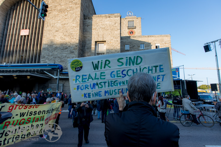 Nach der Demonstration entschlossen sich einige Bürger zu einer Spontandemonstration in den Kopfbahnhof und den vorgeschobenen Ersatzbahnhof zu ziehen und diese Demo mit einem „Schwabenstreich“ in der stillgelegten Haupthalle zu beenden.
