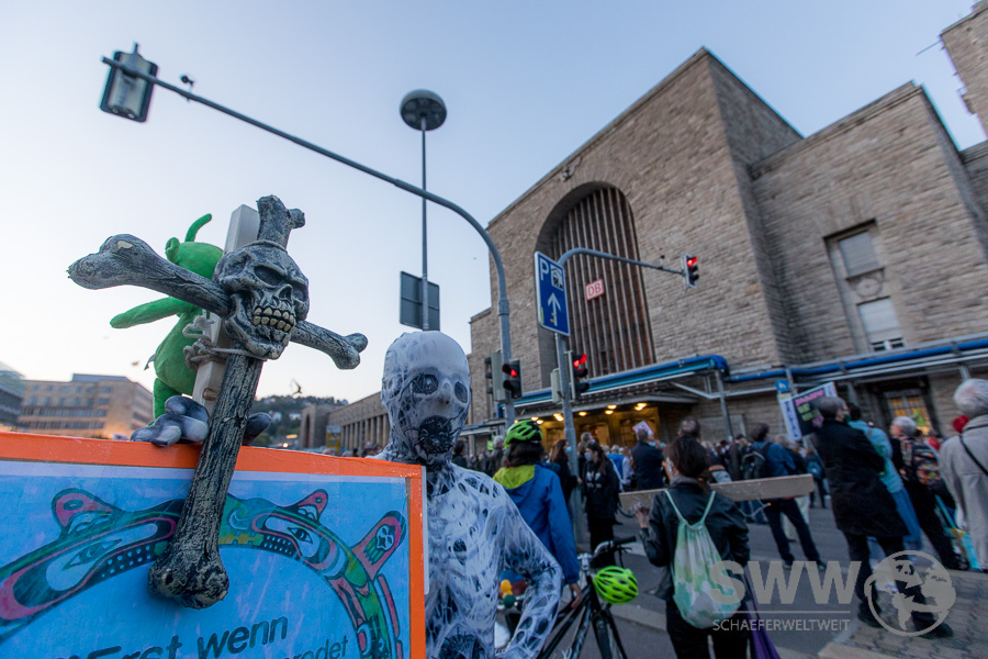 Unter dem Motto „Ihre Lügen – unser Zorn“ trafen sich zahlreiche Bürger anlässlich des 10. Jahrestages, des Schwarzen Donnerstag, zu einem Schweigemarsch und einer Demonstration vor dem Kopfbahnhof in Stuttgart.
