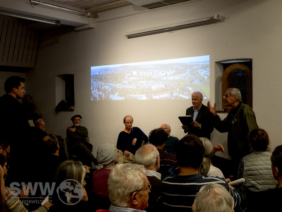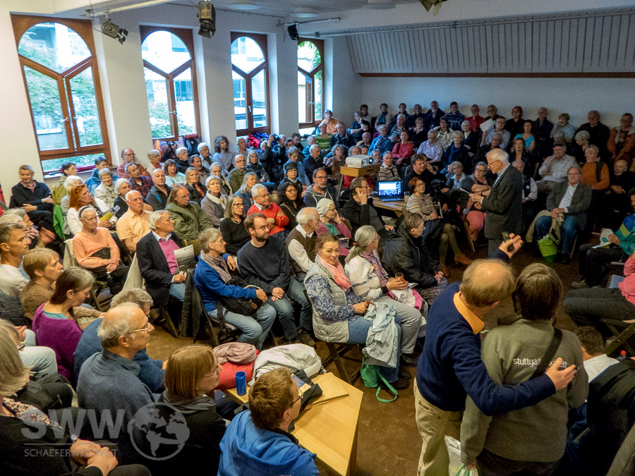 Das Aktionsbündnis gegen Stuttgart 21 lud zum Infoabend unter dem Motto „Der Ausstieg ist nötig und möglich!“ und ca. 130 Personen informierten sich zum neuen Umstiegs Konzept. In der Bevölkerung scheint sich ja die Meinung zu verbreiten „Stuttgart 21 wird gebaut – da kann man nichts mehr machen.“ Um diesen großen Irrtum zu beseitigen entwickelten die Mitglieder des Bündnisses gemeinsam Konzepte wie der Umstieg sofort und unter Nutzung der bereits vorhandenen gebauten Elemente möglich ist. Zu dieser Ausarbeitung des wenn man so möchte „Kopfbahnhof 2.0“, gehörte auch die Analyse der bereits gebauten Abschnitte. Hier zeigte sich auch wieder das der Eindruck „Da ist ja schon so viel gebaut“ den mancher wenig informierte Passant bekommt überhaupt nicht zutrifft.