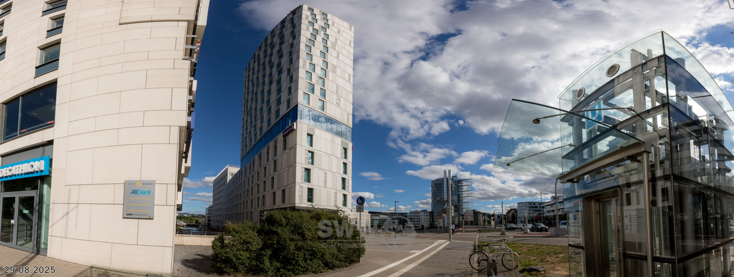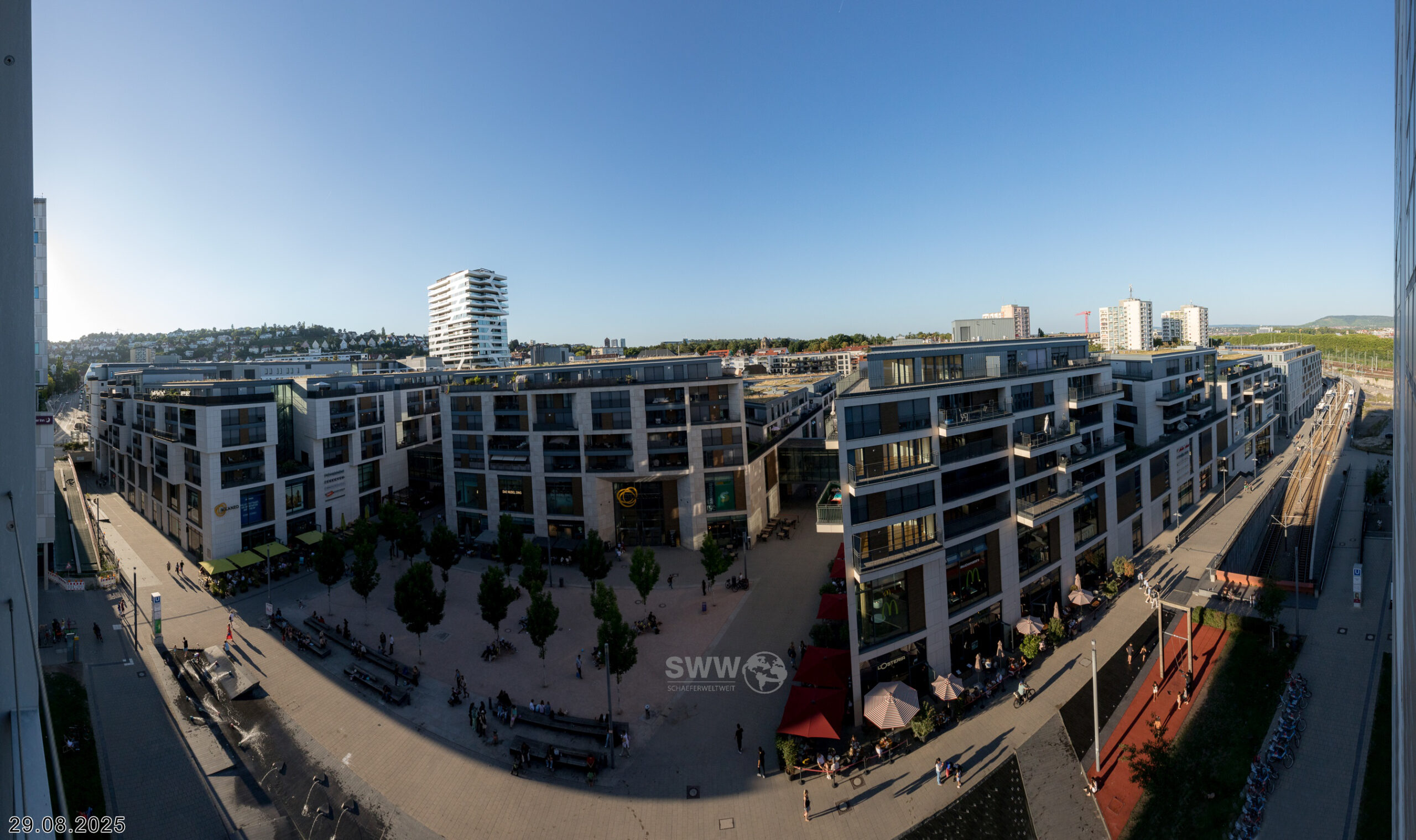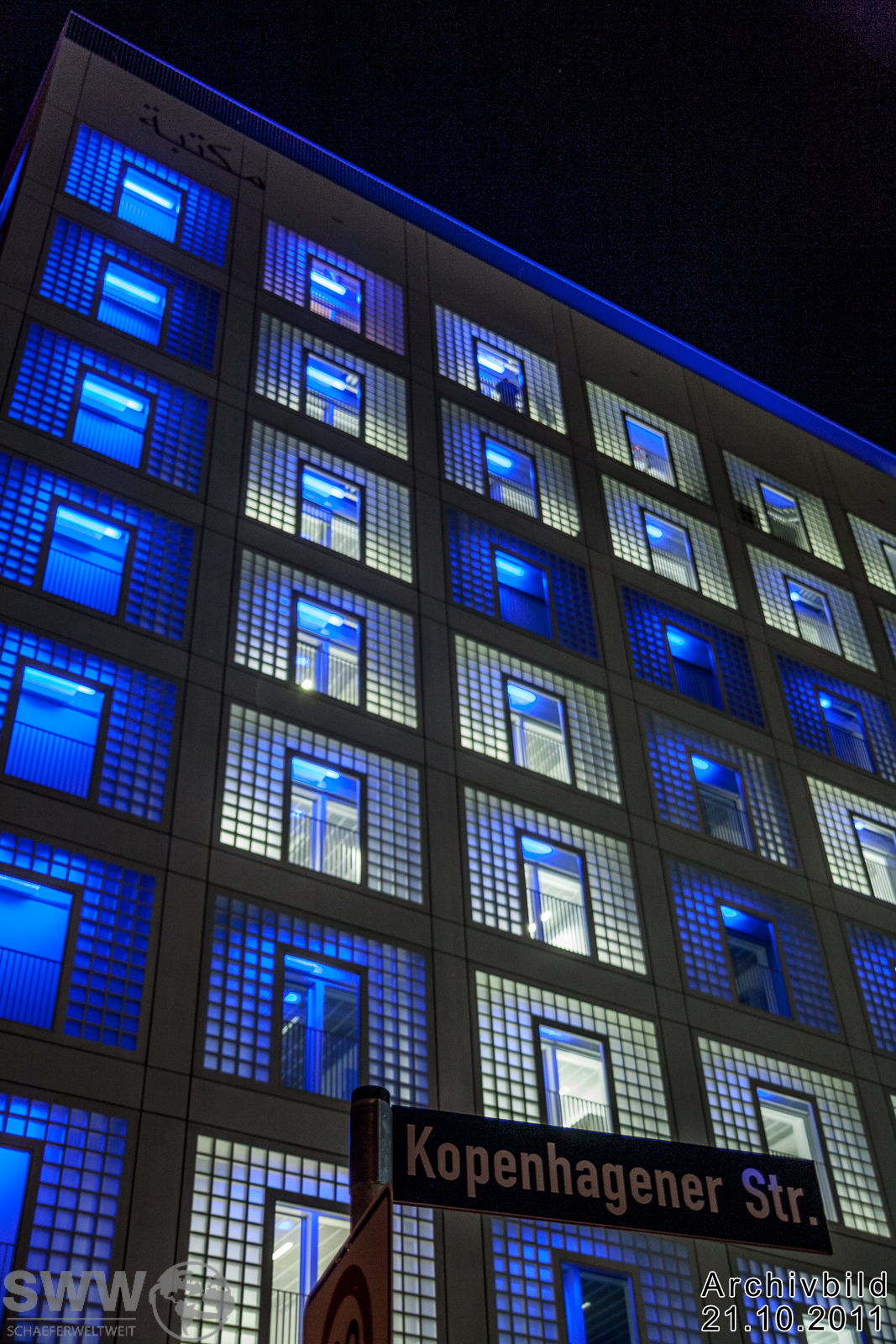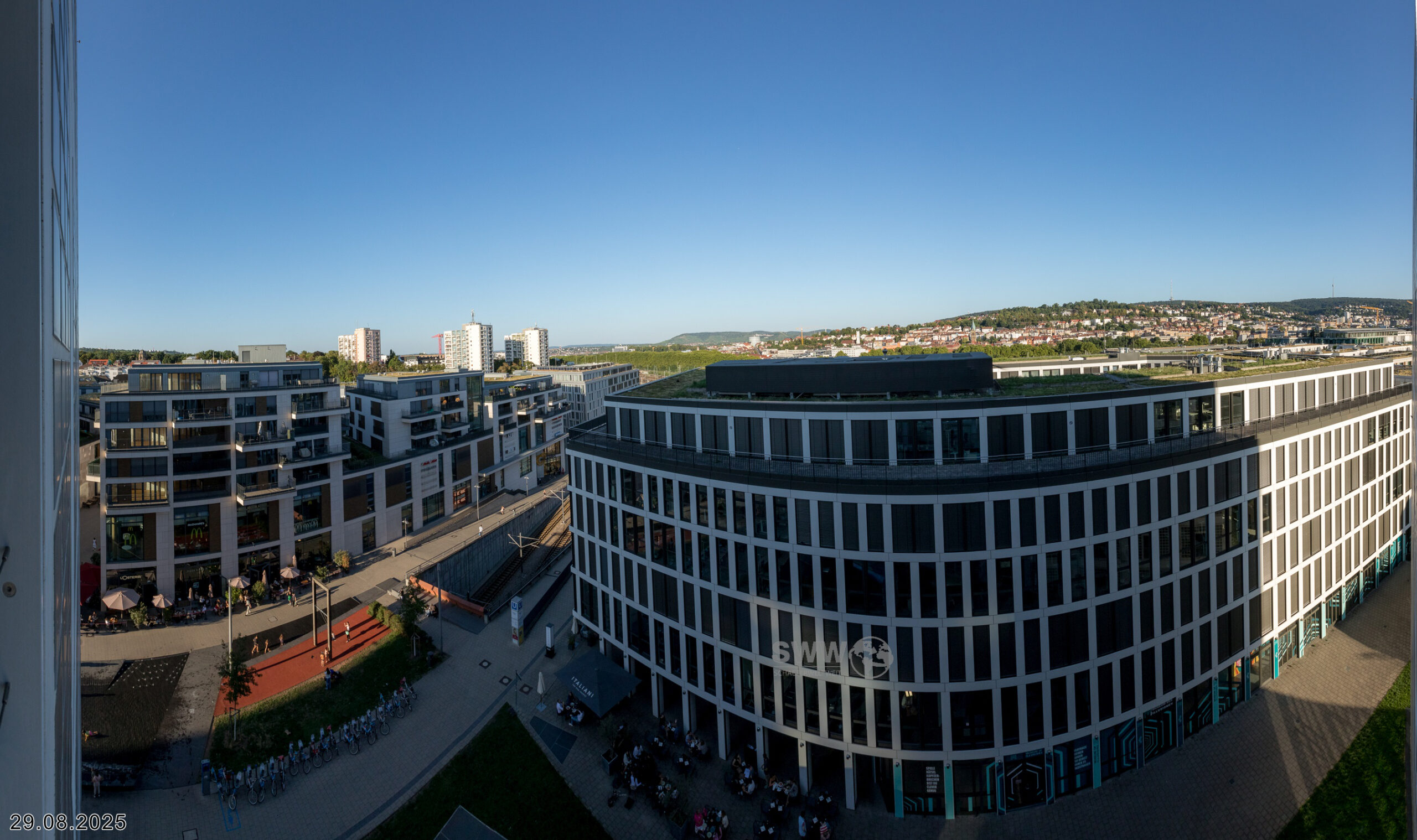 Mittlerweile ist das Umfeld der Stadtbibliothek durch zahlreiche Neubauten stark gewachsen. Die ehemals singuläre Präsenz auf dem „Berg“ ist heute von anderen Gebäuden umschlossen fast schon eingezwängt, sodass die Wirkung des monumentalen Solitärs deutlich verloren hat. Der einst herausragende Blick auf den markanten „Bücherwürfel“ über der Brachfläche ist überbaut, und die Architektur kann ihre imponierende Wirkung nicht mehr so entfalten wie zu Beginn – was allerdings ja durchaus geplant war. Die Stadtbibliothek wirkt nun eingebettet und erschöpft sich zunehmend im urbanen Kontext, was die (nachts blau leuchtende) Strahlkraft des Bauwerks meiner Meinung nach ziemlich schmälert.