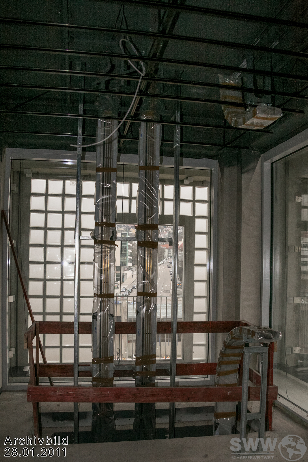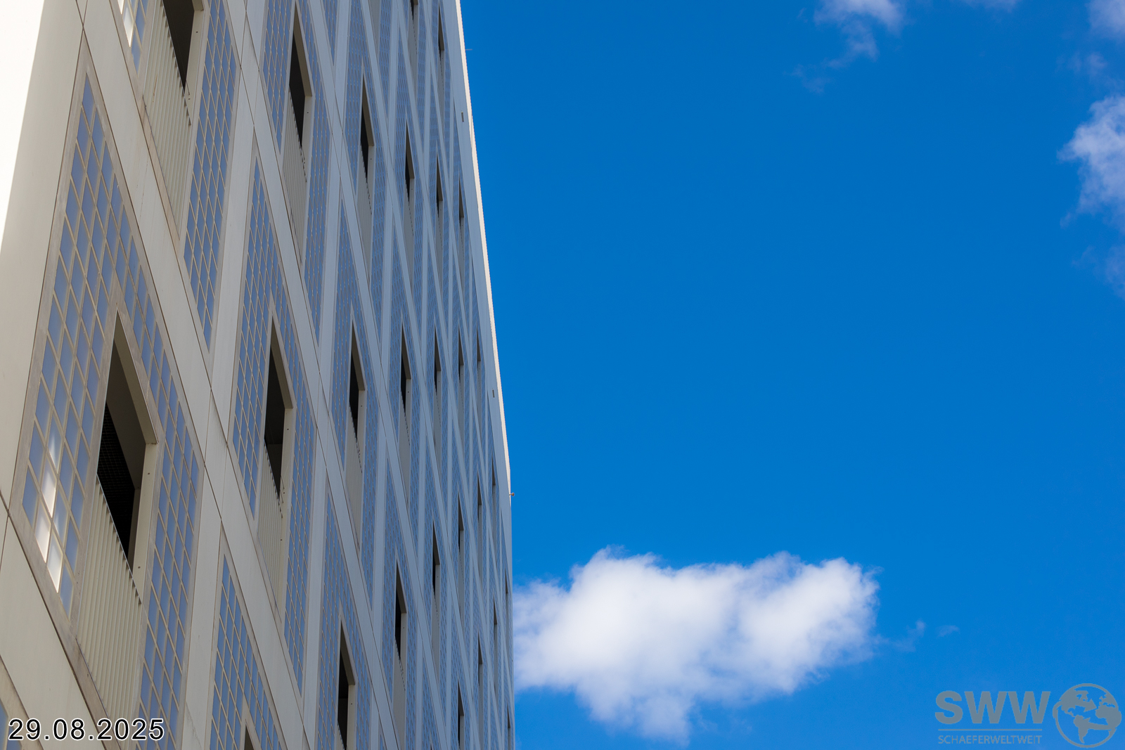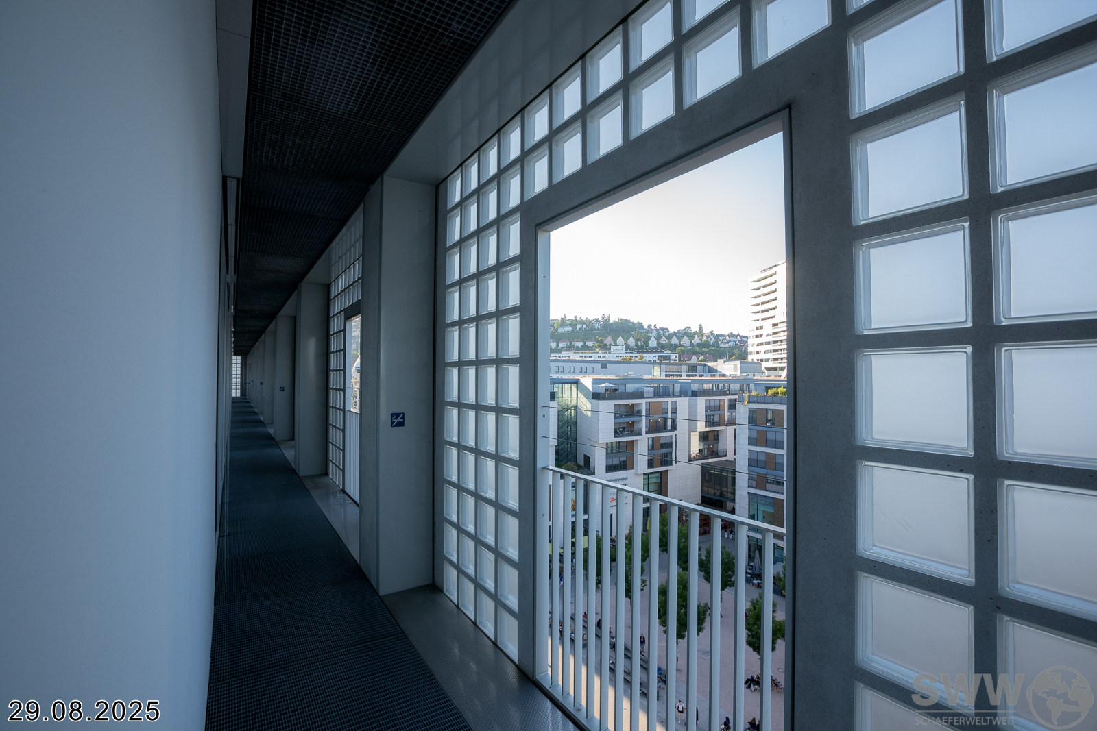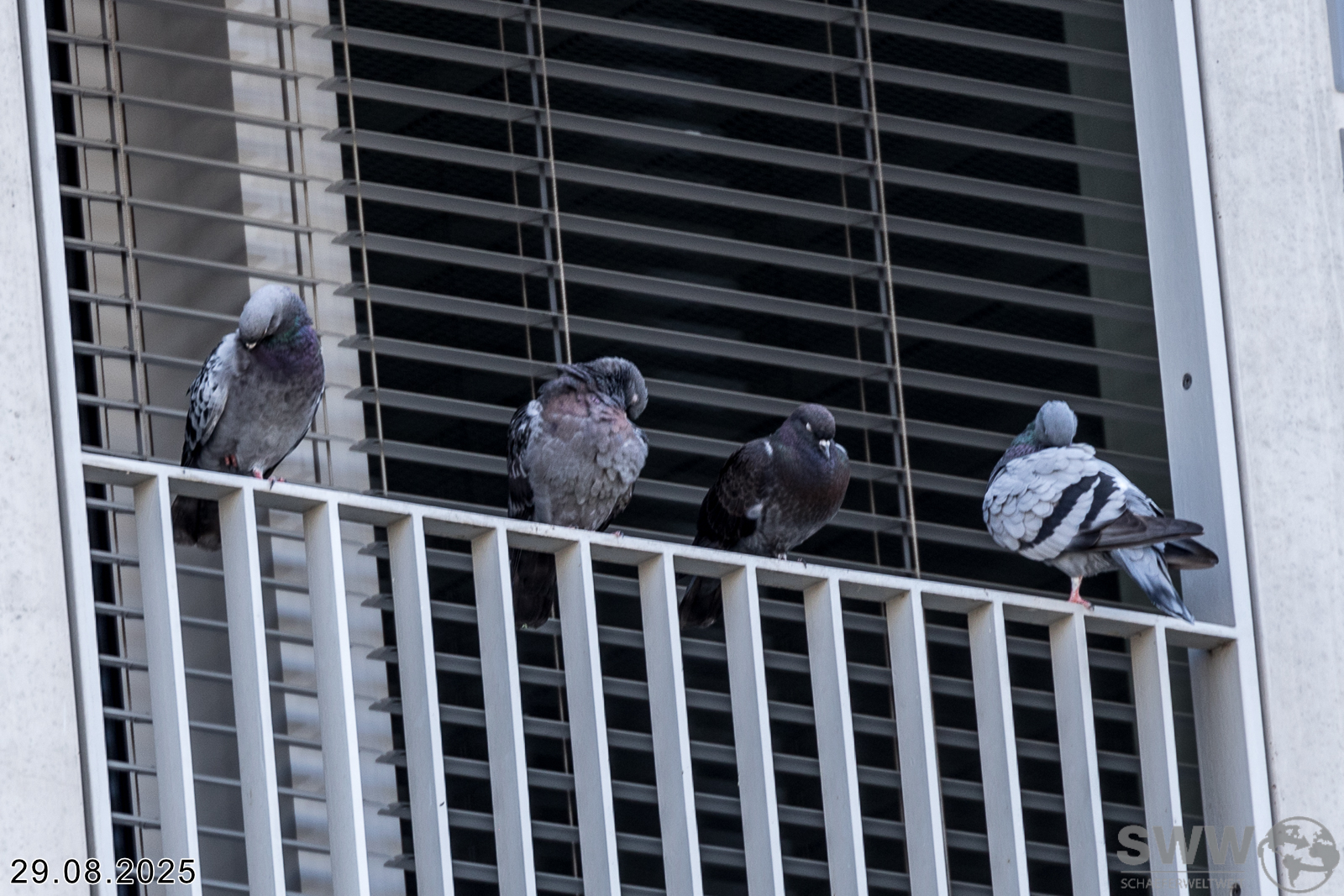 Die Fassade der Stadtbibliothek Stuttgart weist mehrere Mängel auf. Besonders problematisch sind die Öffnungen und umlaufenden Wandelgänge zwischen der inneren und äußeren Doppelfassade, durch die Tauben ungehindert eindringen können. Die Vögel haben sich über lange Zeit in diesen Bereichen niedergelassen und verursachen durch ihre Hinterlassenschaften hygienische Probleme und Schäden an der Fassade. Die Stadt hat bereits Maßnahmen ergriffen, darunter der Versuch, durch einen Falkner mit Wüstenbussarden die Tauben zu vertreiben, sowie den Einsatz von Schutzgittern, um das Problem langfristig zu kontrollieren. Bei einem Besuch in diesen Tagen zeigt sich jedoch wenig Erfolg: Die Tauben scheinen inzwischen die tatsächlichen Hauptbewohner der Fassade zu sein.
