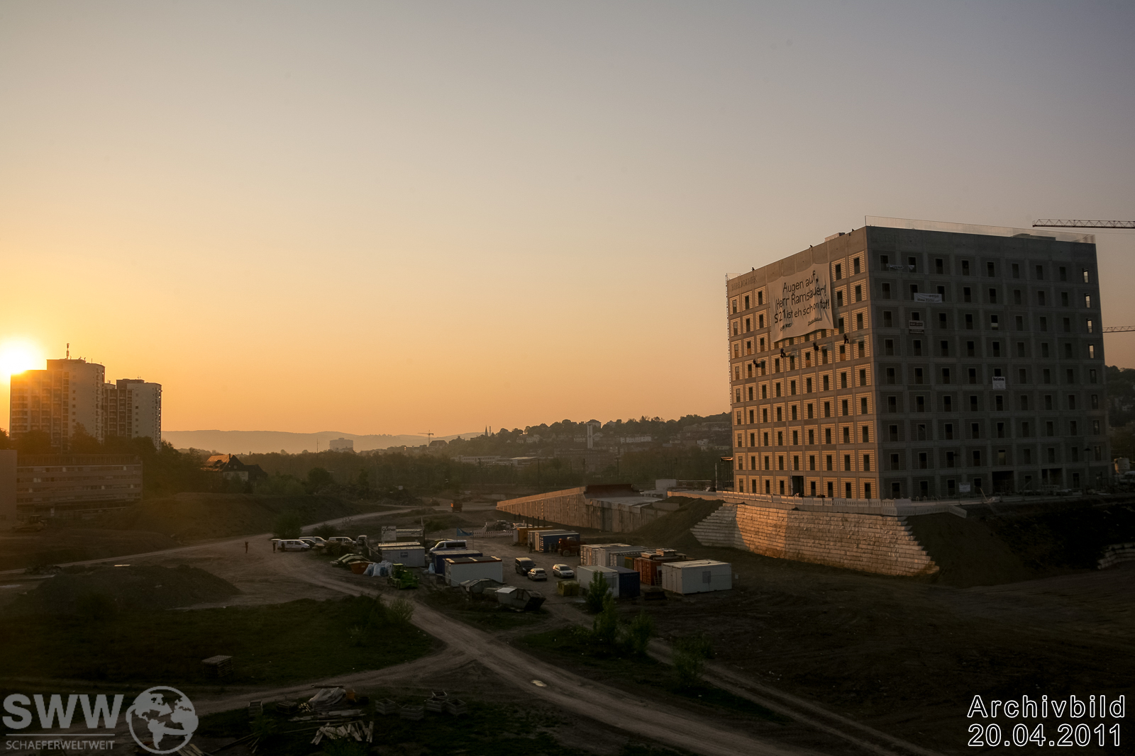 Archivbilder: zwei Baustellenführungen 2011 / RoWo Protestaktion 2011 / Eröffnungsfeier 2011 / Trauung und Shooting als Beispiel Alternativer Nutzung