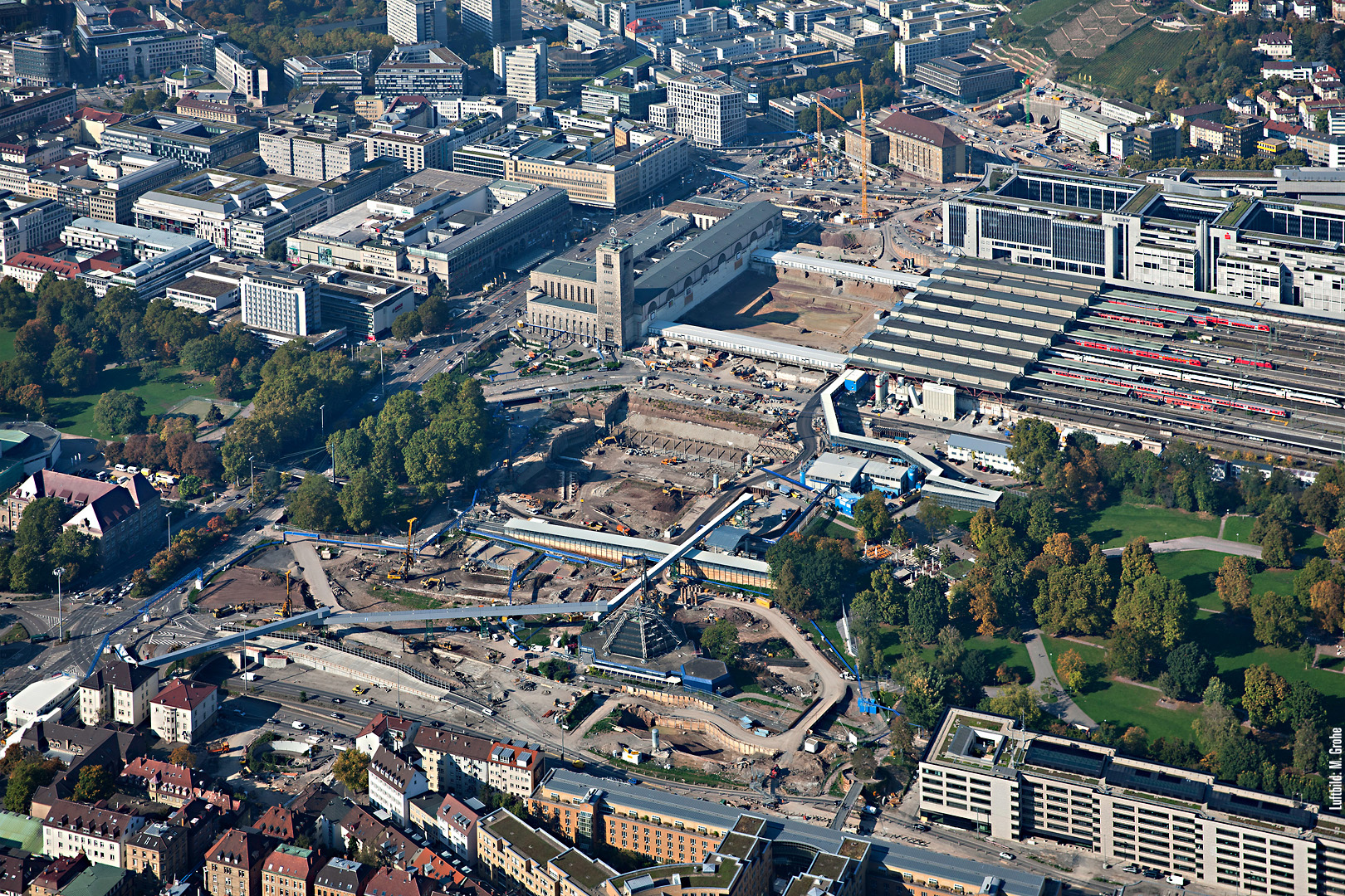Das S21-Abraum-Förderband und die Grundwassermanagement-Anlage (GWM) im zerstörten Mittleren Schlossgarten sind schnell zerleg- und entfernbar. Ebenso die provisorisch angelegten Baustraßen. Die große Grube im Schlossgarten kann entweder binnen kürzester Zeit wieder verfüllt werden, um den Mittleren Schlossgarten sofort, und sogar um die ehemalige ZOB-Fläche vergrößert, wieder neu anzulegen. Oder man nutzt die darin bereits gegossene Magerbetonplatte als Fundament für den einst sehr beliebten Landespavillion mit seinem kostenlosen Kulturangebot, der dort als großzügiges Amphi-Theater wiederauferstehen kann.