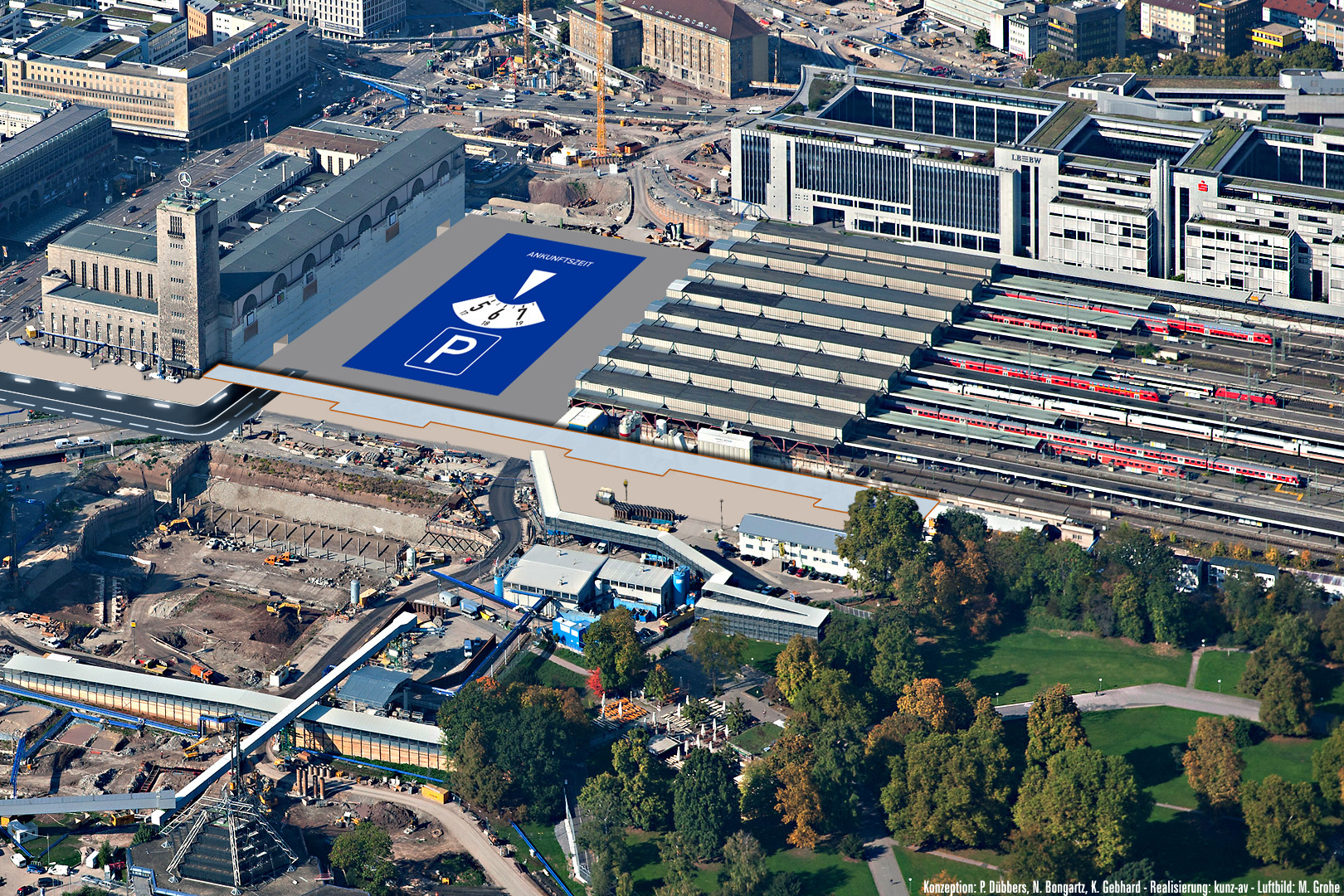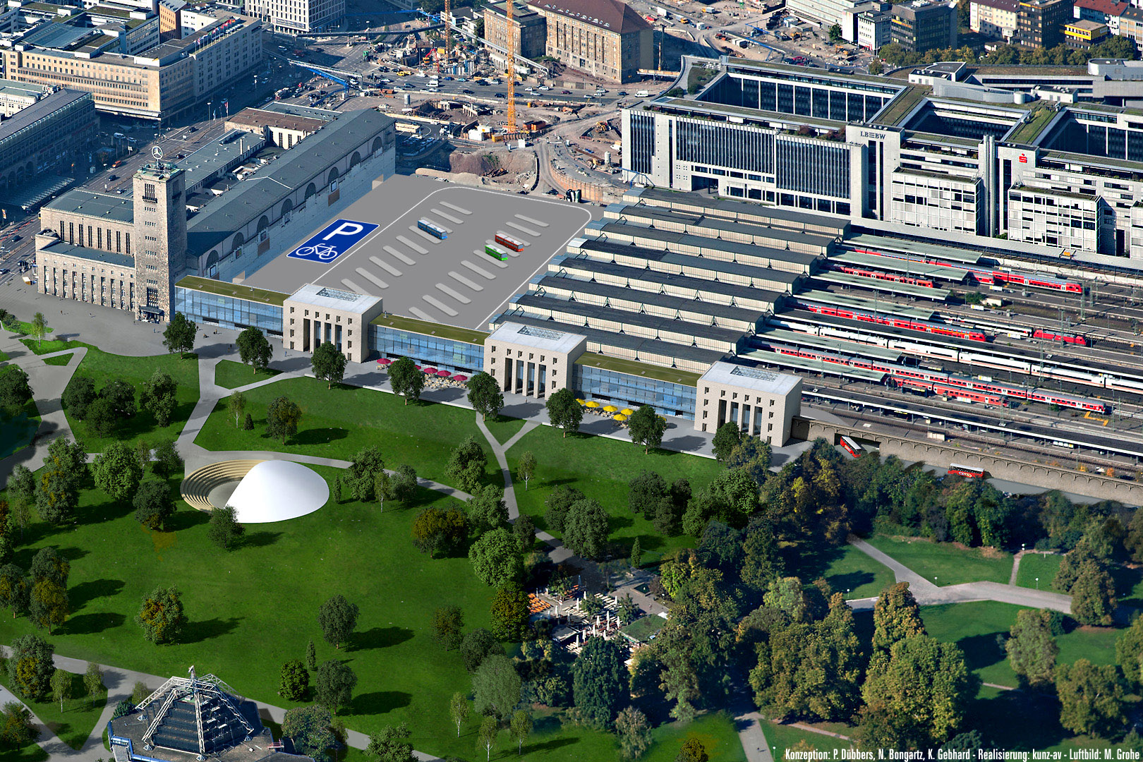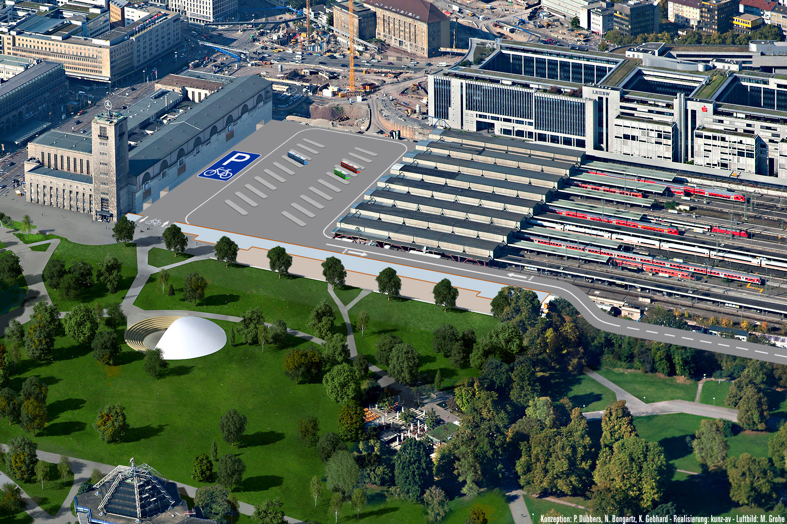 Der Arnulf-Klett-Platz vor dem Hauptbahnhof könnte verkehrsberuhigt umgebaut werden, nur für SSB-Busse und Taxis (wie bei S21 abenfalls geplant). Der Kurt-Georg-Kiesinger-Platz am ehemaligen Nordflügel könnte mit einem Taxistand und ggf. einem Vorfahrbereich für abholende Angehörige/Freunde versehen werden.