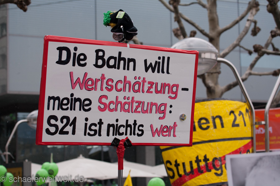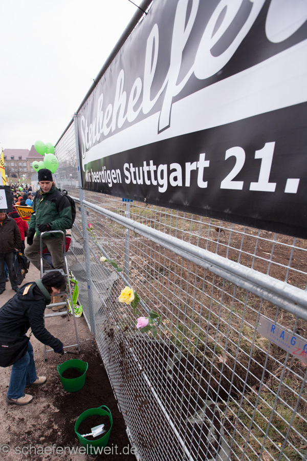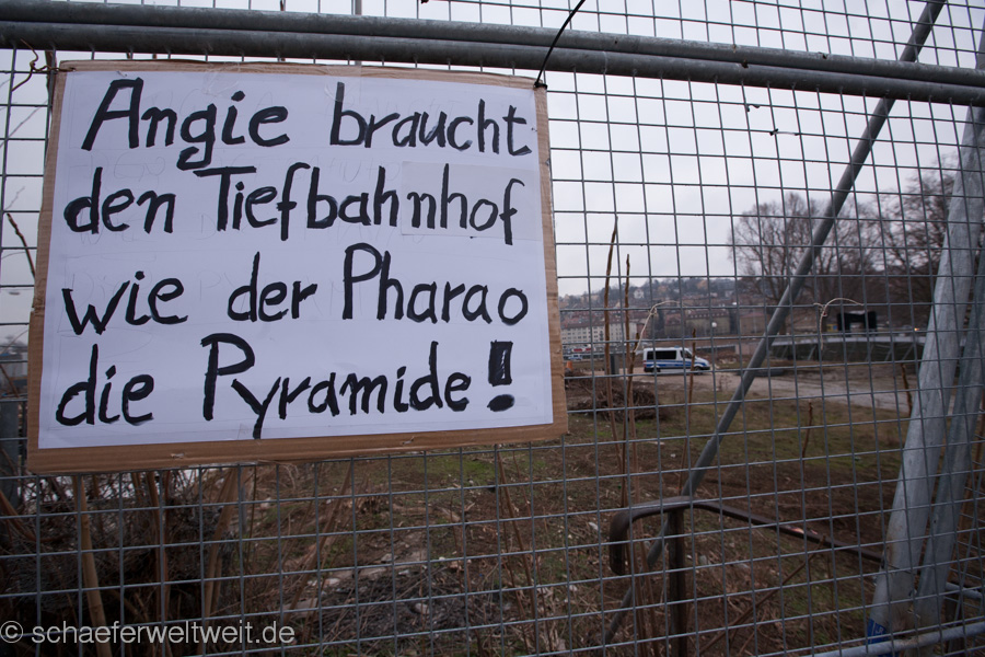 An allen Ecken der Stadt wütet derweil die Bahn im sinnlosen Reigen der blauen Rostrohre oder baut Betonwerke und „Zwischenangriffe der Sinnlosigkeit“. Aber jetzt lieber mal ein paar Impressionen der wirklich verlässlichen Tatsachen bei S21! Diese Tatsachen sind die Mutbürger in Stuttgart – seit 3 Jahren massiv auf der Straße seit beginn des Unsinns in der wirklich kritischen Begleitung. Bei Wind und Wetter (auch Unwetter und Stürmen im Wasserglas Politischer Natur) stehen sie auf dem Platz, den auf dem Platz entscheidet sich das traurige Spiel!