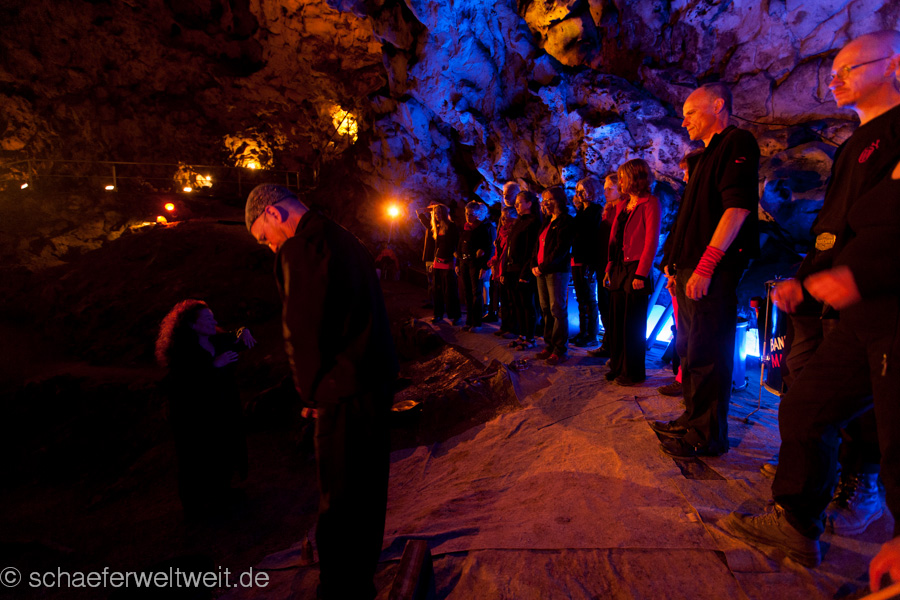 Eine Kostprobe aus dem Jahre 2010 als kurzes Video. Das nächste Konzert ist am 20. September 2014. Die Musik lässt sich zwar nur vor Ort und in der passend beleuchteten Kulisse der Höhle wirklich bis in die Knochen erleben, doch für die Wartezeit gibt es auch eine CD aus diesem Jahr, welche speziell in der besonderen Akustik dieser Höhle aufgenommen wird.