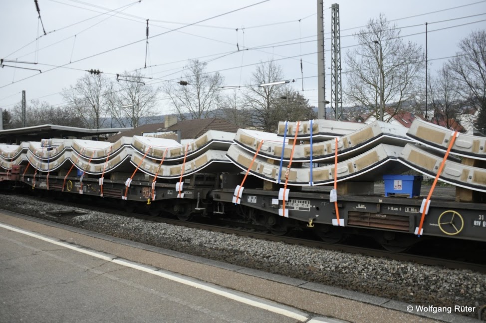 Was kostet eigentlich der Stillstand einer S21-Tunnelbohrmaschine und anderer Anlagen pro Tag? Wer bezahlt das? Beteiligt sich heimlich die Stadt Stuttgart daran? Zudem liegt die Baustelle beim S21-Fildertunnelportal im Fasanenhof voller Tübbinge. Ein Abfluss der Tübbinge in den Tunnel ist nicht erkennbar. Und bei einem Blick nach Altbach-Deizisau kurz vor Plochingen bringt es an den Tag. Da rollt doch tatsächlich ein ganzer Güterzug mit neuen Tübbingen an.