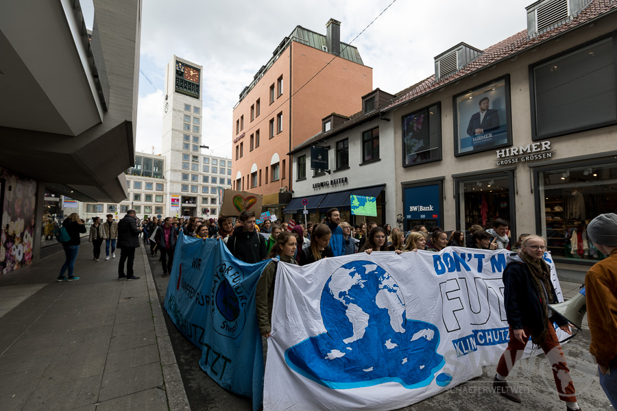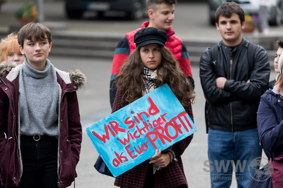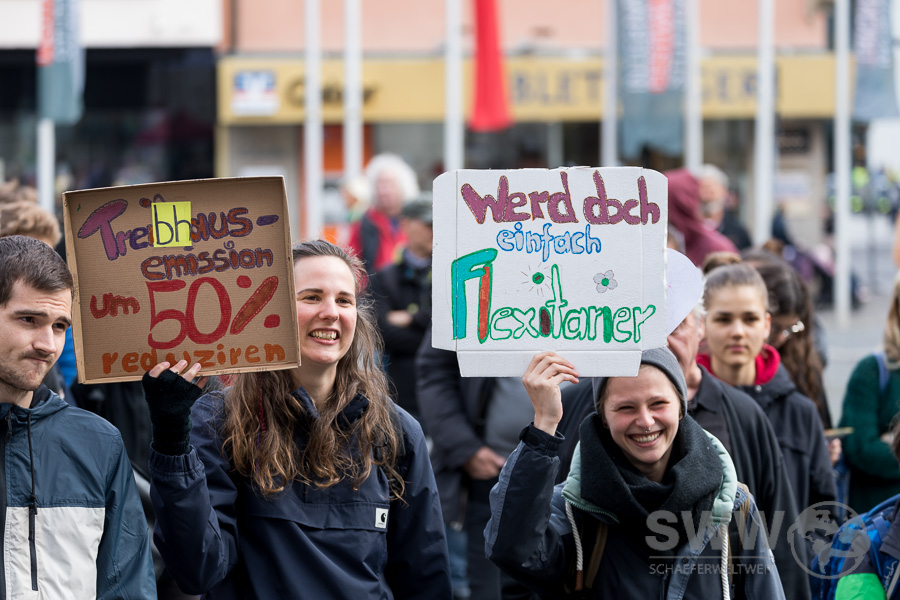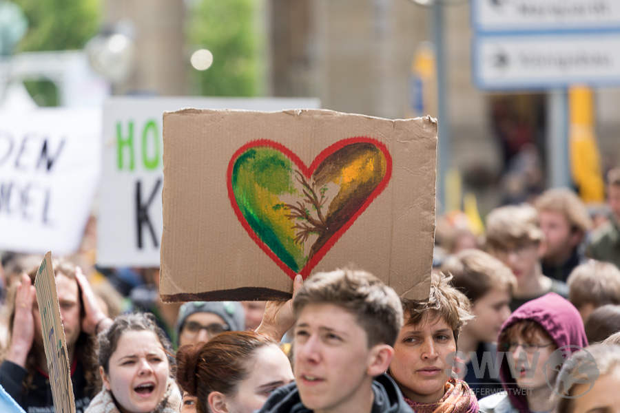 The participants of „Friday for Future“  met on the market square in Stuttgart. After several speeches, they discussed in several thematic groups  and then they walked through the whole city centre for a serious and timely climate policy.