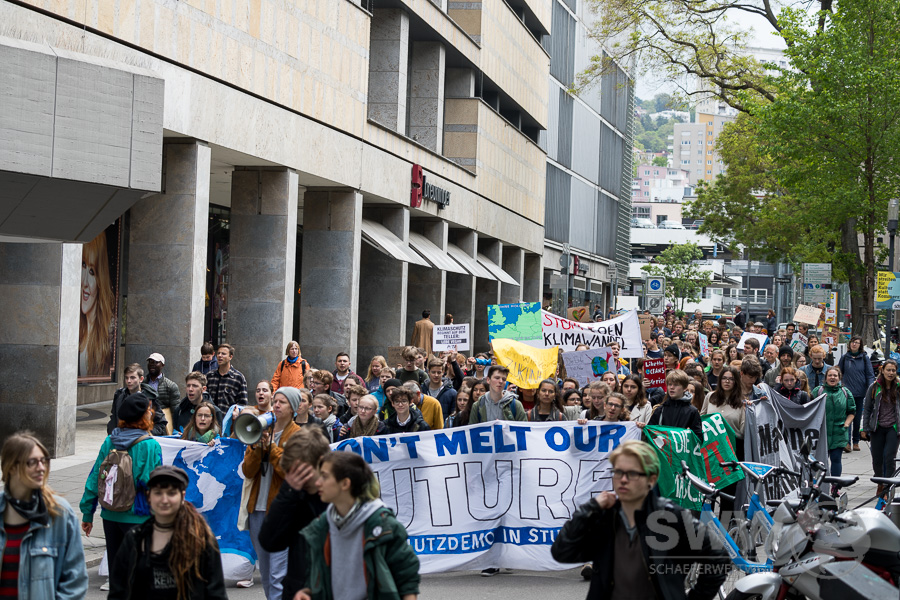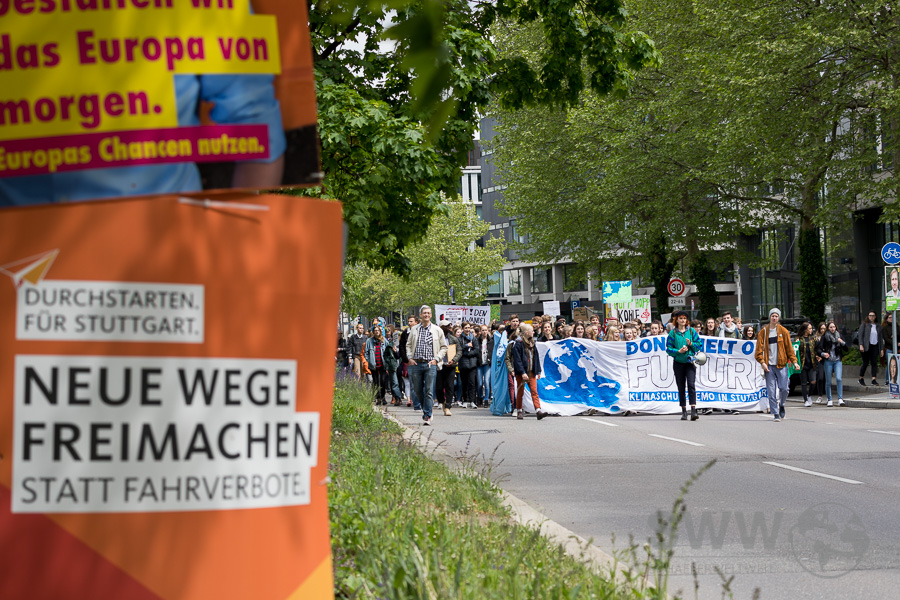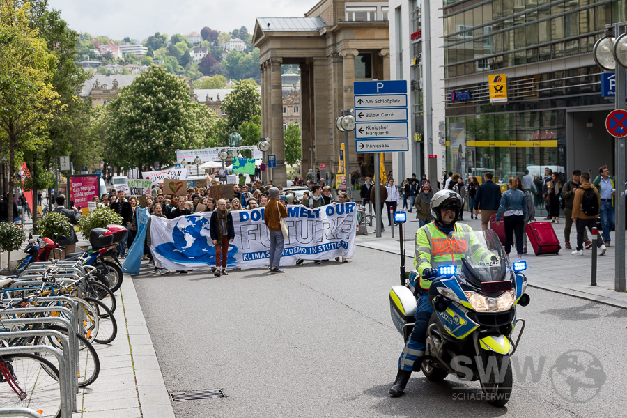 Am 3. Mai trafen sich die Teilnehmer der Friday for Future Demonstration auf dem Stuttgarter Marktplatz. Nach mehreren Reden, diskutierten sie auf dem Platz in mehreren Themengruppen um danach mit einem langen Demozug durch die Innenstadt  für  eine ernstzunehmende zeitnahe Klimapolitik zu  demonstrieren.