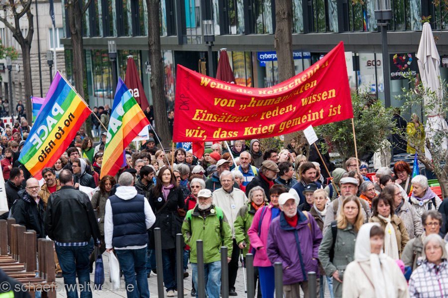 Vor jedem dieser Kriege versuchten Friedensbewegungen und antifaschistischer Widerstand vergeblich, den Kriegstreibern in den Arm zu fallen. Erst nach dem zweiten Weltkrieg fand die Mahnung zum Frieden Eingang ins Völkerrecht und ins Grundgesetz. Dennoch wurde sie von den jeweiligen Bundesregierungen und der übergroßen Mehrheit des Bundestages immer wieder in den Wind geschlagen. Von deutschem Boden geht wieder Krieg aus. Eine starke Friedensbewegung bleibt unverzichtbar.