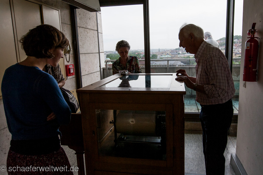Bei der monatlichen Führung „Rathausturm und Glockenspiel“ im Stuttgarter Rathaus,  informiert Franz-Dieter Bretzler (Haupt- und Personalamt) über den Turm und das Glockenspiel, das fünfmal täglich erklingt. Fachliches zum Instrument erklärt Pianist und Glockenspieler Eckart Hirschmann, der für die Besucher Melodien bekannter Komponisten spielt.