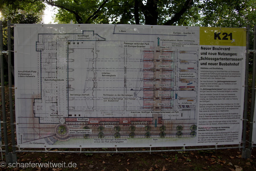 IMG_8644_IMG_8648-5 imagesIch möchte hier noch auf eben zwei PDFs zum Kopfbahnhof 21 verweisen. Zum einen auf die Vorstellung von K21 (link) sowie auf eine PDF, welche die Projekte eher gegenüber stellt und vergleicht. Leider wird dabei ziemlich viel Augenmerk auf S21 gestellt. Dies ist der Zeit geschuldet in der die PDF´s entstanden. Damals ging es um eine Entscheidung zwischen beiden Projekten. Heute geht es doch eher darum den Wahnsinn S21 zu beenden und endlich mit Sinnvollem zu beginnen – mit dem Umbau zum Kopfbahnhof 21.