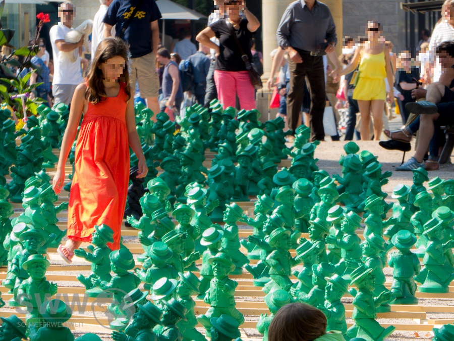 Anlässlich des 25. Jubiläums der Deutschen Einheit stehen zur Zeit Hunderte „Einheitsmännchen“ auf dem Stuttgarter Schlossplatz.