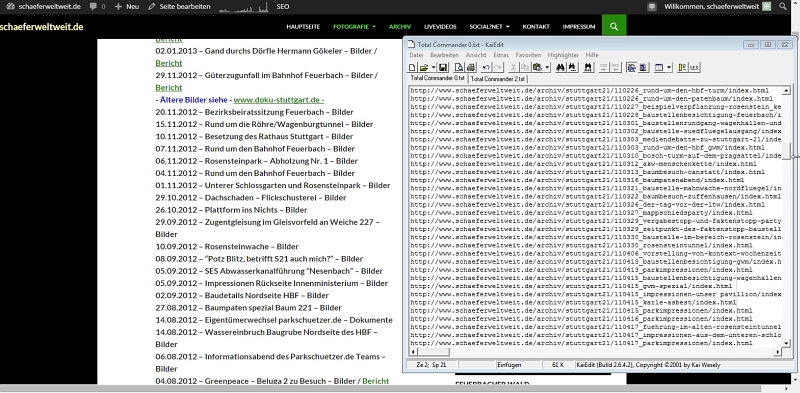 Ab jetzt passiert mit meinen Bildern also nur noch was ich selbst möchte (hoffentlich). Bewusst habe ich mich hier für den Umständlicheren Weg entschieden. Es gibt natürlich tausende Lösungen, die einem die Arbeit erleichtern sollen. So war es ja auch bei Picasa – bis es dann von Google+ gekauft wurde… Daher wollte ich jetzt bewusst so gut es geht auf Automatische Lösungen verzichten. Ich hoffe dies Ermöglicht nun eine wesentlich störungsfreie Verwaltung und damit nicht mehr viele weitere Veränderungen an diesem System. Auch die Domain doku-stuttgart.de wird nun direkt auf dieses Archiv umgeleitet werden. Vorschaubilder wird es zwar keine geben, aber ich denke die Durchsuchbarkeit nach Stichwort oder Datum ist hier wesentlich wichtiger. Das ist auch der Grund warum ich das Archiv noch nicht in Unterseiten aufgeteilt habe. Dadurch ist es eben einfacher mal ALLES nach Stichwort xyz zu durchsuchen. Das zurecht finden erleichtern die Links und Sprünge zu den Überschriften, einfach mal anklicken und testen. Es werden wohl auch noch Sprünge auf die „Jahre“ hinzukommen.