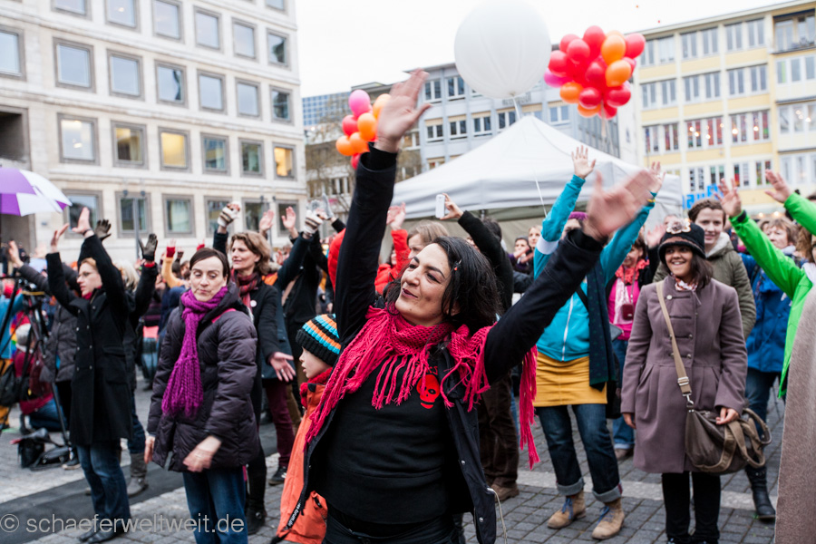ONE BILLION RISING FOR JUSTICE – Eine Milliarde erhebt sich für Gerechtigkeit – ist eine weltweite Bewegung für Gerechtigkeit, Gleichberechtigung und Gewaltfreiheit. Die Initiative ONE BILLION RISING wurde im September 2012 von der amerikanischen Feministin und Künstlerin Eve Ensler ins Leben gerufen. Am 14. Februar 2013 fanden bereits in über 200 Ländern Veranstaltungen, Demonstrationen und Kundgebungen für ein Ende der Gewalt gegen Frauen und Mädchen statt. Jede 3. Frau wird im Laufe ihres Lebens ein Opfer von Gewalt. ONE BILLION RISING