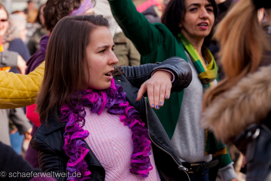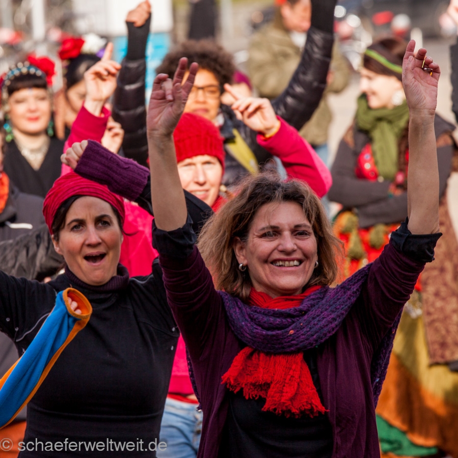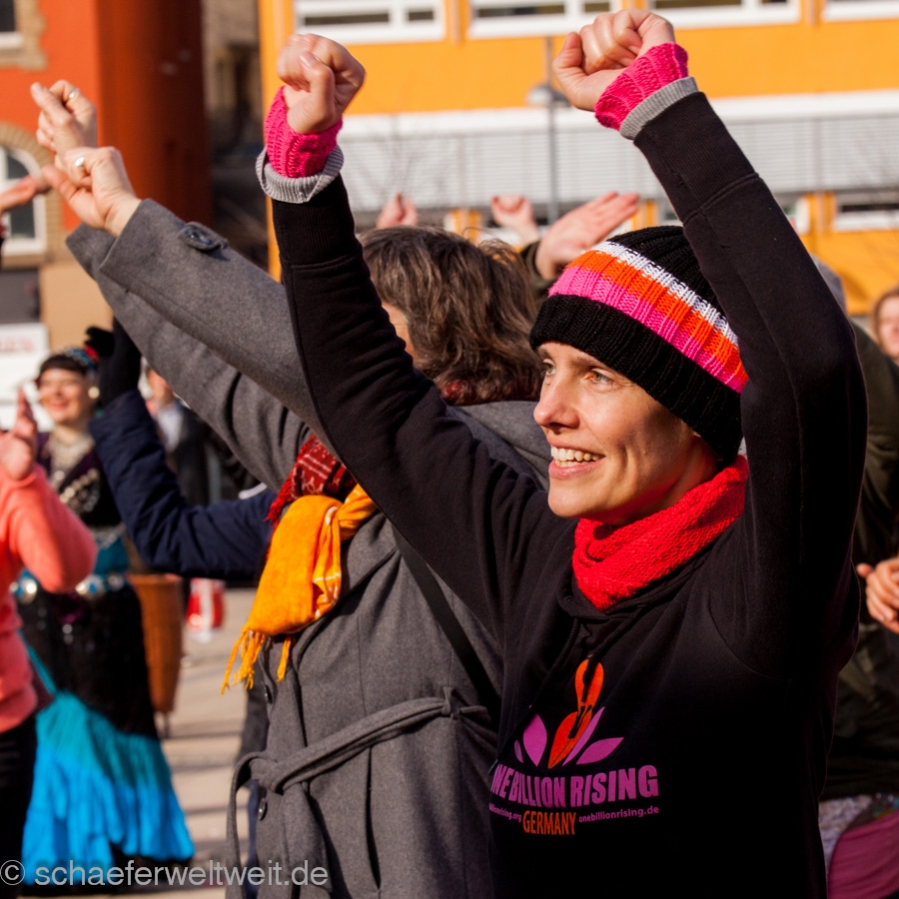 „One Billion Rising“ (englisch für „Eine Milliarde erhebt sich“) ist eine weltweite Kampagne von Frauen für ein Ende der Gewalt gegen Frauen und Mädchen. Auch auf dem Marienplatz trafen sich Frauen und Männer um sich zu erheben und zu tanzen.