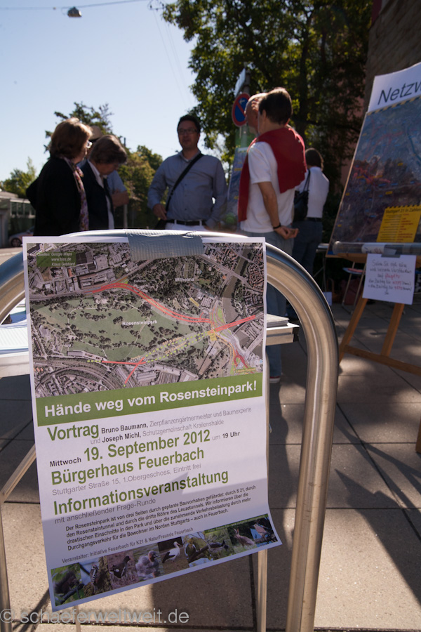 Die länger schon angekündigte und angemeldete Aktion wurde aber am Freitag mit einer sehr entlarvenden Begründung verboten: „Es gelte, die Nacht- und Sonntagsruhe zu schützen.“ begründete das Amt für öffentliche Ordnung. Man beachte das es sich dabei um die Lärmbelastung geht die durch S21 entstehen wird. Den Anwohnern ist also dringend geraten (nicht zuletzt jetzt vom Ordnungsamt) den Erörterungstermin zum Anhörungsverfahren für die noch nicht genehmigte Planung zu beachten, bei dem Bürger ihre berechtigten Einwände vorgebracht und Bedenken geltend gemacht haben.