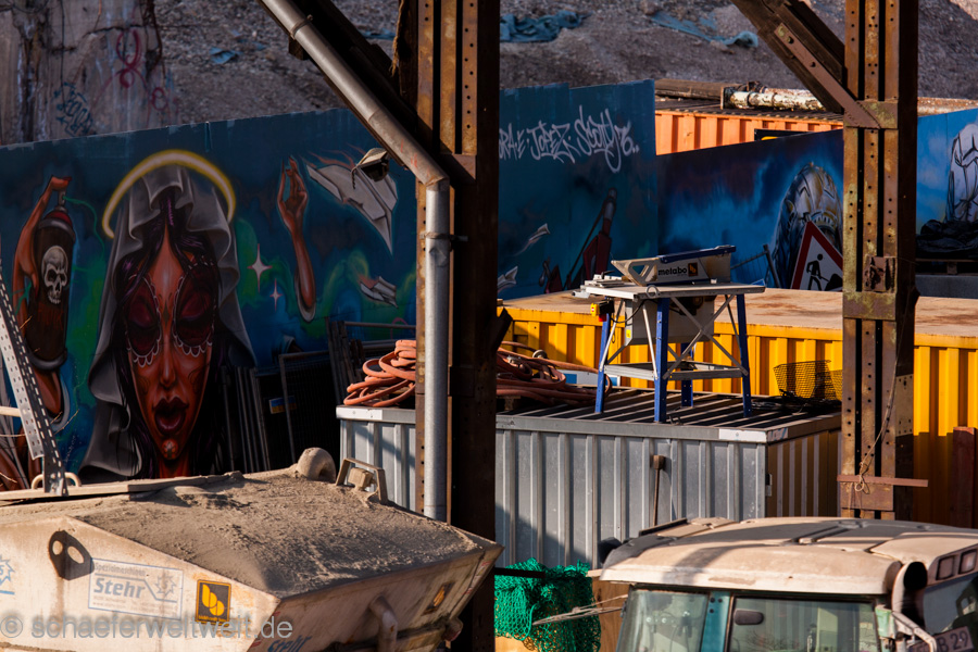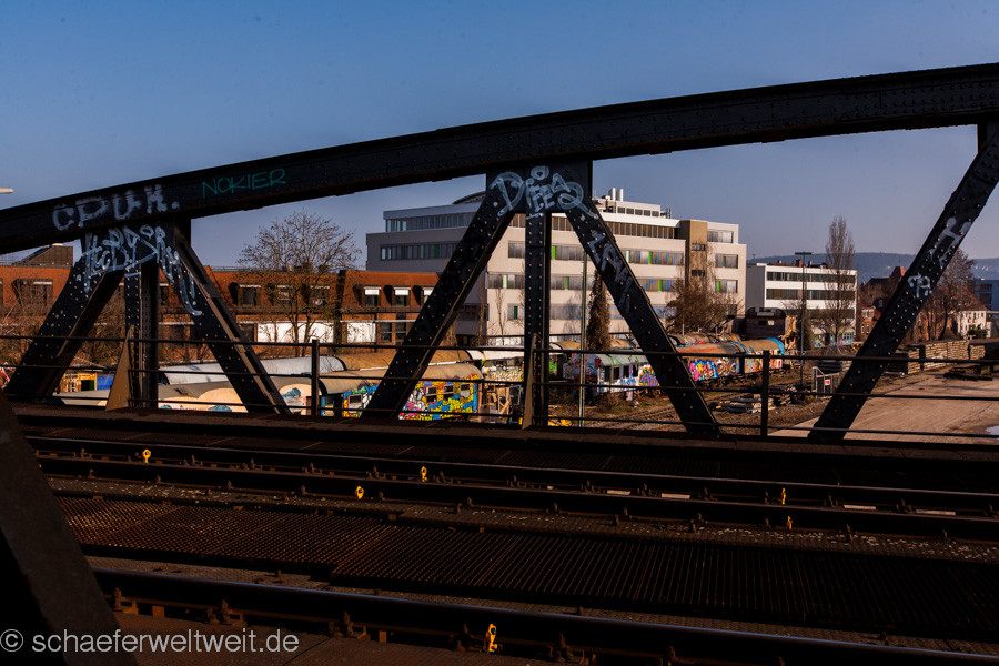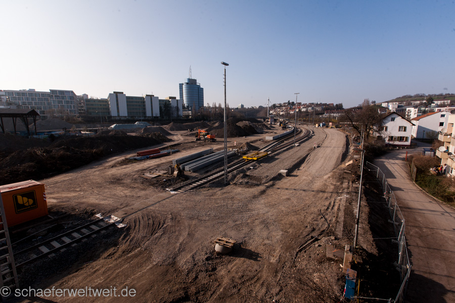 Impressionen aus dem Baugebiet rund um den Nordbahnhof in Stuttgart. Hier soll irgendwann in ferner Zukunft der Hauptumschlagplatz für den Dreck von Stuttgart 21 entstehen. Seit Jahren passiert hier fast nichts. Mittlerweile türmt sich der Dreck aus dem „Cannstatter Tunnel“ hier zwar zum Himmel, aber von einem funktionierenden Umschlagsplatz ist noch nicht viel zu sehen. Nach Jahren werden zwar zaghaft erste Gleise verlegt und „Verlade-Bahnsteige“ erstellt, funktionsfähig ist das aber alles noch lange nicht. Selbst die Baustraße zum HBF ist noch sehr weit von einer Fertigstellung entfernt. Nur wer die Pläne kennt erkennt die ersten leichten Ansätze zu diesen eigentlich wichtigen Baustraße. Ebenso scheint sich beim Zwischenangriff neben dem Pragtunnel nichts zu tun. Man munkelt das die Brücke (eine weitere fehlende Baustraße) über die Gleise nicht realisierbar sein soll.