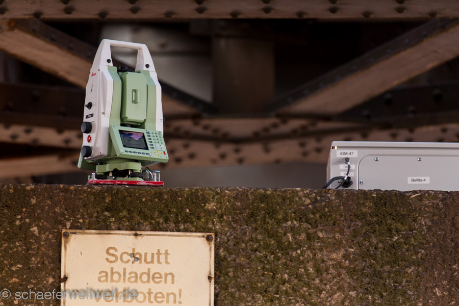 Neben der vorhandenen „Soda“ Reifenwaschanlage welche aber nicht genutzt wird, fallen auch auffällig viele Messpunkte auf. Im ganzen Gebiet rund um den Zugangsschacht zum Cannstatter Tunnel verteilt, scheint es den Bauherren sehr wichtig alle Bewegungen des Bodens aufzuzeichnen und zu dokumentieren. (sieht man mal von nicht funktionierenden Messgeräten ab welche auf Störmeldungen stehen…) Mindestens 5 Vermessungsgeräte sind hier im Gelände verteilt und vermessen vorwiegend vorhandene Bahngleise, Bahneinrichtungen und die Gäubahn-Brücke. In der Vergangenheit traten diese Geräte immer erst auf wenn bereits Probleme entstanden waren, so zb. nach dem massiven Dachschaden der DB welcher beim Abriss des Schlossgartenflügels des HBF entstand.