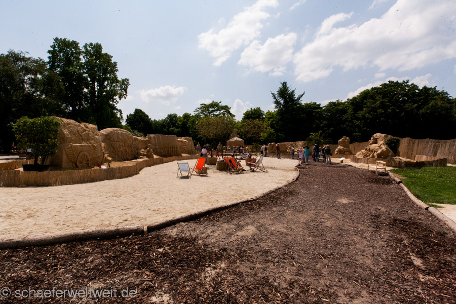 Wer sich in Erinnerungen an so manche eigene einst gebaute Sandburg am Strand zurück versetzen lassen möchte, hat bis September noch die Gelegenheit sich dort in einen der Sonnenstühle zu legen. Beim Eisgekühlten Cocktail lassen sich die Kunstwerke aus Sand und einer Schutzschicht aus Naturkautschuk stilvoll und im Strandfeeling bewundern. Bis zum 29. September täglich von 10 bis 22 Uhr kann für vier Euro, Kinder ab sechs Jahren zwei Euro, gestaunt und bewundert werden.
