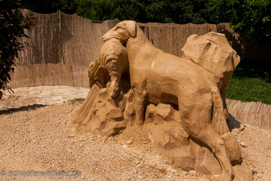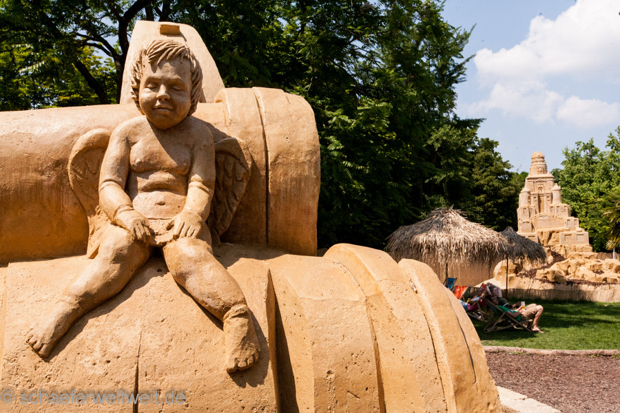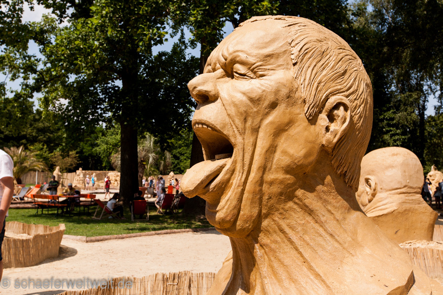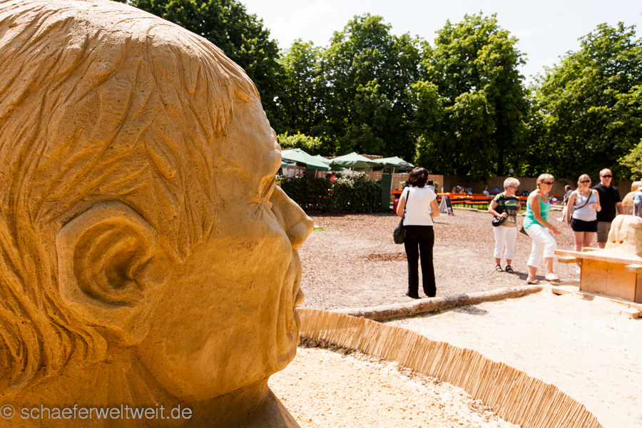Seit Anfang Mai stehen sie nun schon in Ludwigsburg auf der Bärenwiese – die Sandwelten verschiedener Künstler aus aller Welt. Unter der Leitung von Michel de Kok entstanden große Skulpturen mit atemberaubenden Dimensionen von bis zu 9 Meter Höhe und 230 Tonnen Sand in einem einzigen Objekt ( „Feelin Baroque“ ein Schloss von Rich Varano ). Genauso begeistern aber neben den Massen an Sand, auch etliche filigrane und liebevolle Details der meist barocken Motive.
