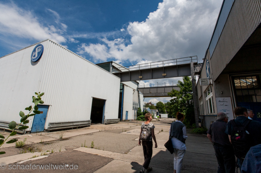 Seit einigen Jahren sieht es immer Schlimmer aus Rund um das alte Schoch-Areal (Baujahr vor 1919) in Feuerbach. Früher die Arbeitsstelle vieler Angestellter der Gebr. Schoch Hartchrom, verfällt das Gelände immer weiter und wartet auf eine noch ungewisse Zukunft. Schenkt man den aktuellen Planungen Glauben so wird der Abriss bereits 2015 starten. Was man dem Gelände allerdings nicht direkt ansieht, sind die historischen Wandgemälde die es birgt!
