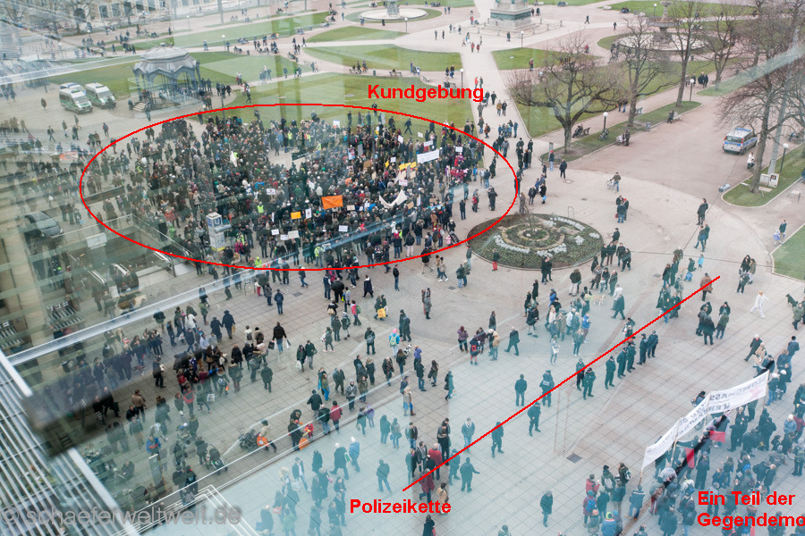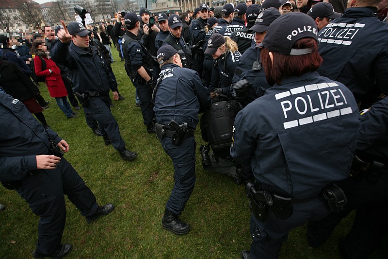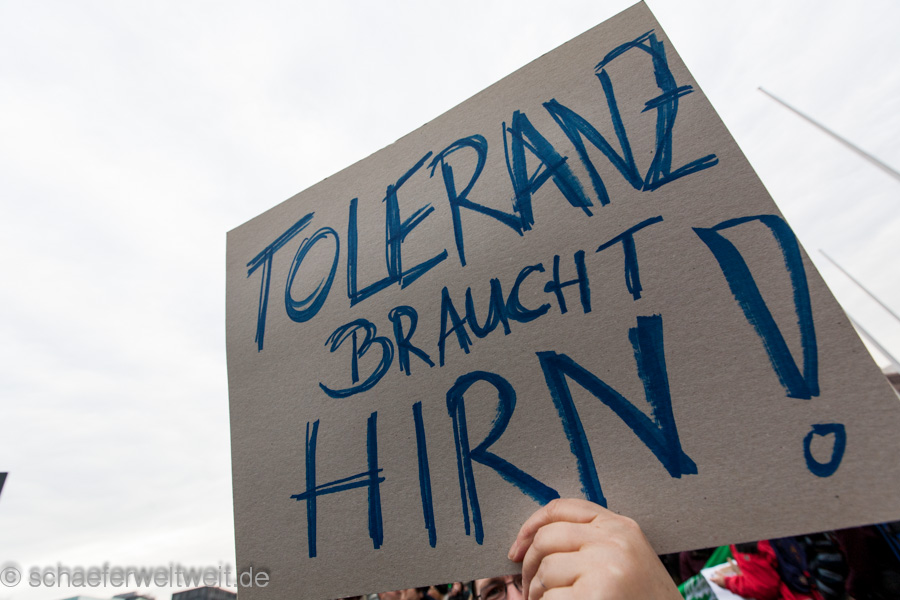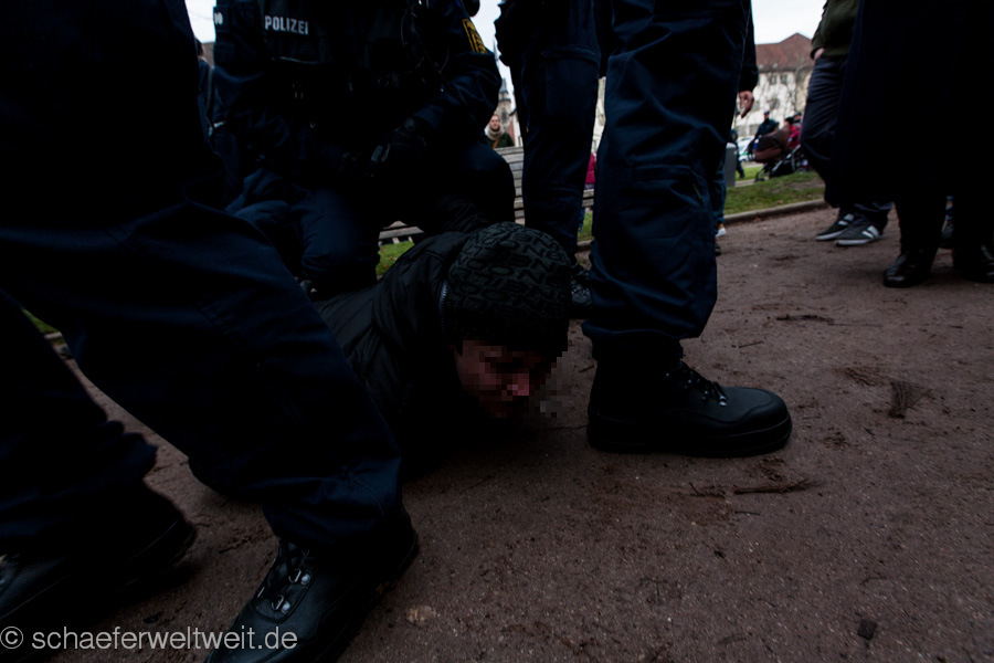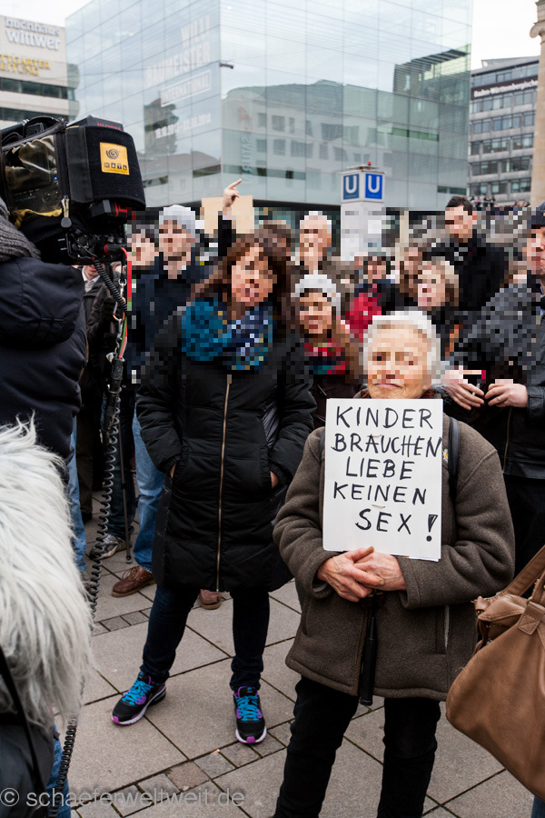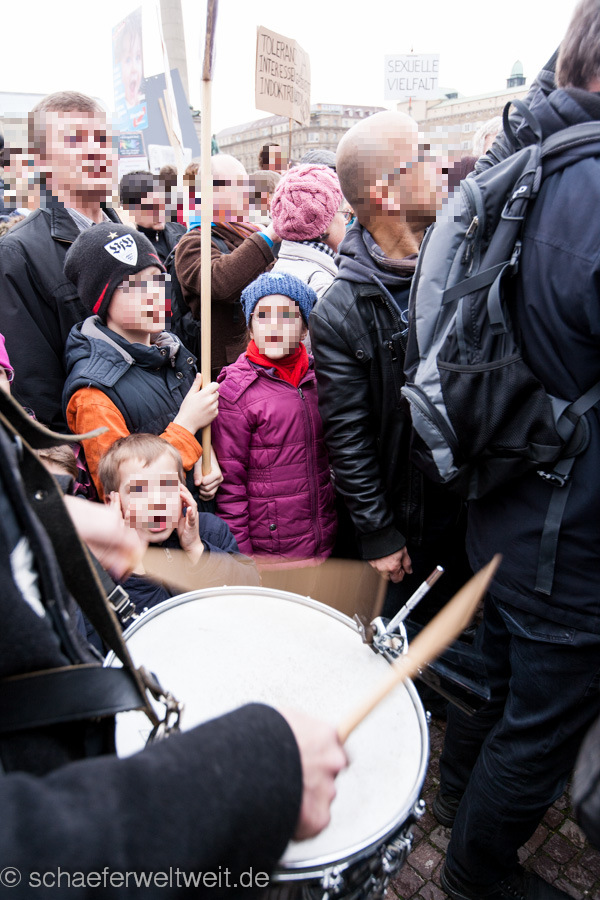 Leider war die Polizei offensichtlich nicht auf diese Ausschreitungen vorbereitet – jedenfalls reichten die Polizeikräfte nicht um die beiden Demonstrationen auseinander zu halten. Schon sehr früh kam es zu Handgreiflichkeiten und auf beiden Seiten wurden immer wieder Personen festgenommen. die Polizei war offensichtlich mit der Lage überfordert. Immer wieder geriet auch ich zwischen die Demonstrationen und wunderte mich an einer Stelle, an der ich nicht weiter kam, doch sehr über eine Familie deren Vater laut „schützt unsere Kinder“ rief obwohl gleichzeitig seine Kinder 10 Minuten oder länger direkt neben einem lautstarken Trommler stehen mussten.