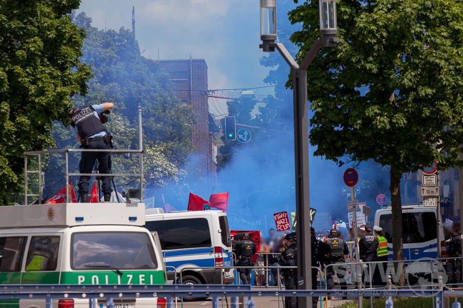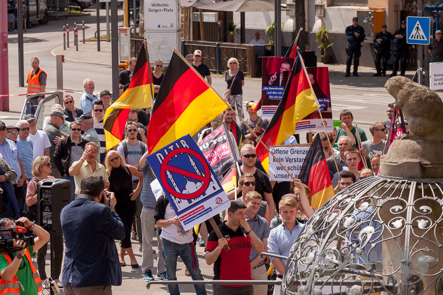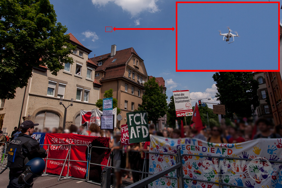 Das massive Polizeiaufgebot legte den Ortsteil über Stunden lahm. Die Haltestelle Wilhelm-Geiger-Platz war nicht erreichbar und neben hunderten Beamten waren zwei Wasserwerfer, eine Pferdestaffel, ein Hubschrauber und mehrere Drohnen im Einsatz. Auch wenn durch Gegendemonstranten einer der Redner der AfD mit Wasser bespritzt wurde und Eier auf Polizisten geworfen wurden sollte die Frage der Verhältnismäßigkeit gestellt werden.