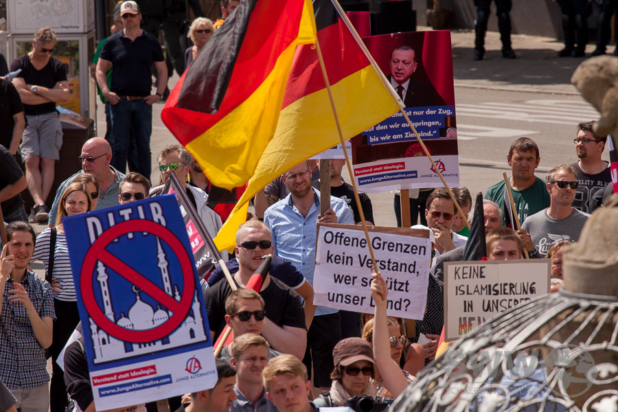 Etwa 110 Teilnehmer einer AfD Demo gegen den Neubau einer Zentralmoschee mit Gemeindezentrum in Feuerbach (Info) standen rund 500 Gegendemonstranten gegenüber welche sich für ein buntes Feuerbach mit der Vielfalt vieler Menschen einsetzten. (Grußwort von Roland Saur als PDF)