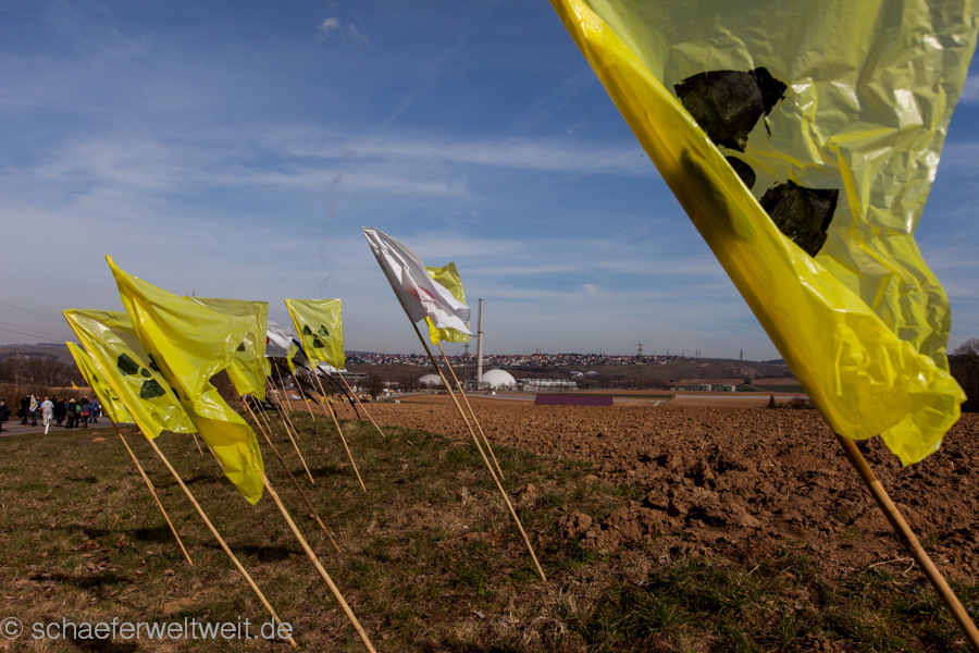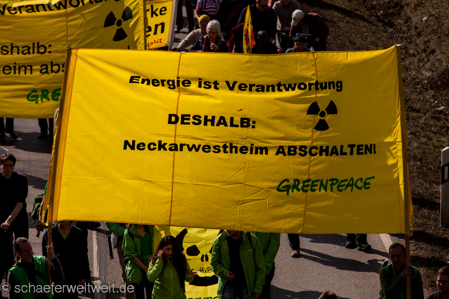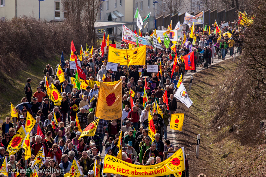 „Fukushima – keine Entwarnung!“ lautete das Motto der Demonstration am 08.03.2015 vom Bahnhof Kirchheim zum Atomkraftwerk Neckarwestheim. Vier Jahre nach dem atomaren Super-GAU in Fukushima demonstrierten tausende Menschen vor dem AKW für den sofortigen Atomausstieg, einen verantwortungsvollen Umgang mit dem Atommüll und die dynamische Fortführung der dezentralen Energiewende. Infos siehe Homepage endlich-abschalten.de