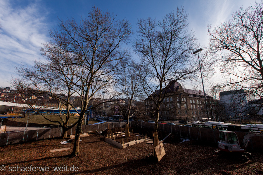 Welch ein Hohn und wieder einmal Beweis für die Fehlplanungen der Bahn! Da schreddert man (entgegen dem viel gepriesenen Schlichterspruch welcher in KEINEM Punkt eingehalten wurde) zig gesunde Bäume statt sie gleich dort hin zu pflanzen wo jetzt neue Bäume gepflanzt wurden. Abgesehen davon wurden damals auch fünf weitere Platanen verpflanzt statt sie sinnvollerweise an die Stellen dieser zwei Bäume heute zu versetzen!