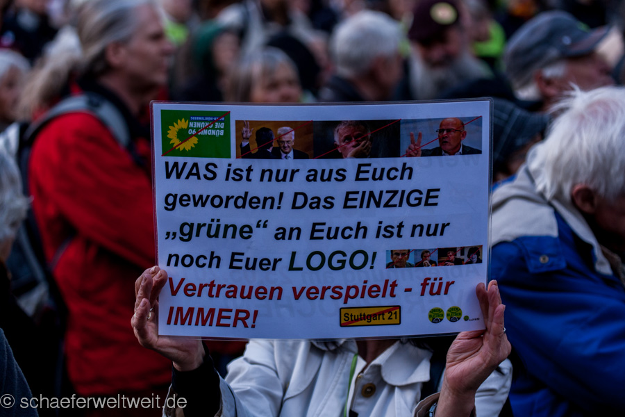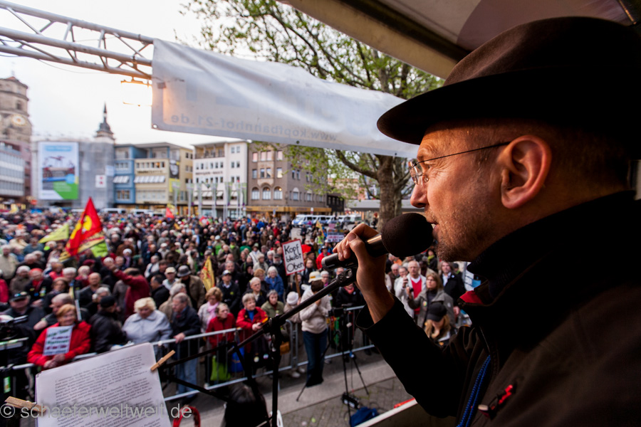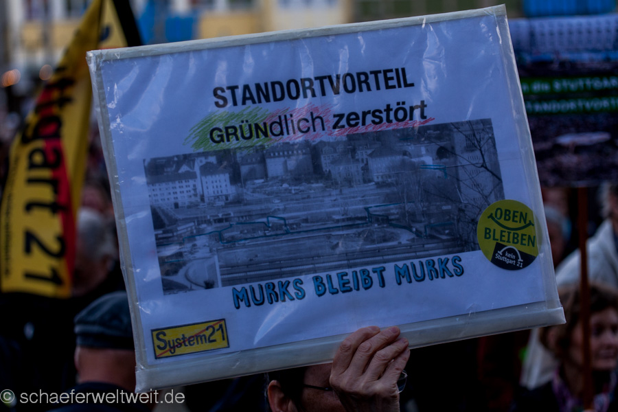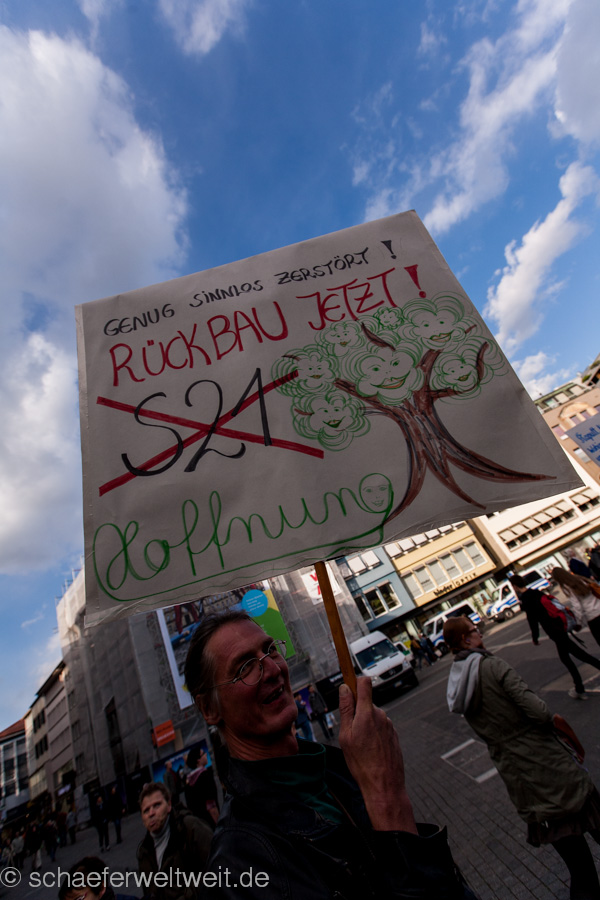 Heute gibt es wieder und damit zum dritten mal die Ergebisse der Umfragen während den Montagsdemos. Die Versorger beziehen Stellung und zwar vor dem HBF bei der Mahnwache. Hier bieten sie heute die Flyer zur letzten Umfrage den Teilnehmern der heutigen Demo an. Laut den Veranstaltern führt die Demoroute heute „über Schiller-, Schloss- und Arnulf-Klett-Platz, über die Willy-Brandt-Straße durch die Haltestelle Staatsgalerie in den Park.“ (link) Also direkt am HBF vorbei. Montagsdemo-Umfragen weiterlesen →