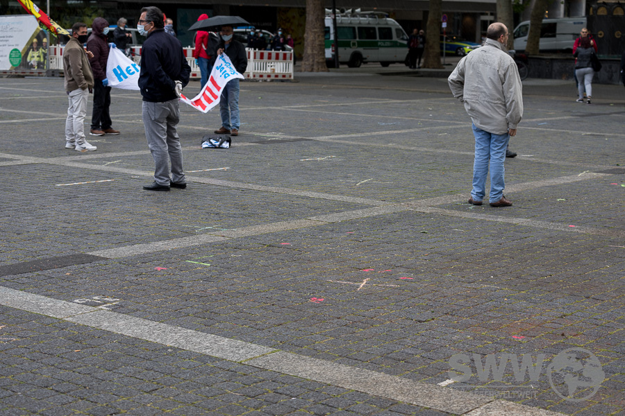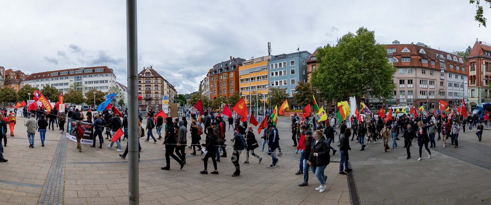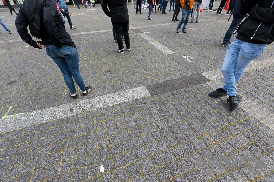Danach fand eine Kundgebung auf dem Stuttgarter Marktplatz statt bei der auch sehr großes Augenmerk auf die besonderen Umstände gelegt werden musste. Nicht nur auf der Kundgebung selbst wurde auf den Sicherheitsabstand (wohlgemerkt gilt dieser nur zwischen Fremden Menschen und nicht bei Familie oder Wohngemeinschaften) geachtet, auch beim anschließenden Demozug wurde trotz getragener Masken versucht diesen stehts einzuhalten. Die Polizei selbst hielt diesen Abstand natürlich in fast keinem Fall ein ABER behauptete das Fotografen selbst wenn diese ausnahmslos und die ganze Zeit Masken trugen diesen angeblich einzuhalten hätten. Das dies den aktuell gültigen Arbeitsrichtlinien (nach denen erst bei nicht einhaltbarem Abstand und zudem eigentlich nur in geschlossenen Räumen eine Maske tragen muß und damit der geringe Abstand wieder völlig ok ist)widerspricht war natürlich dann völlig egal oder den Beamten angeblich nicht einmal bewusst. Leider ist diese Willkür bei sehr vielen Situationen über die Jahre immer wieder und wieder festzustellen. Auffällig scheint dies vor allem immer dann immens wichtig zu sein wenn es um die Berichterstattung von politisch eher links gerichteten Veranstaltungen geht. Dies ist ein großes Armutszeugnis für die Arbeit der Stuttgarter Polizei.