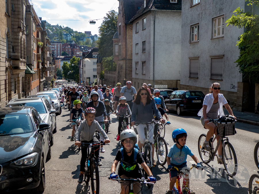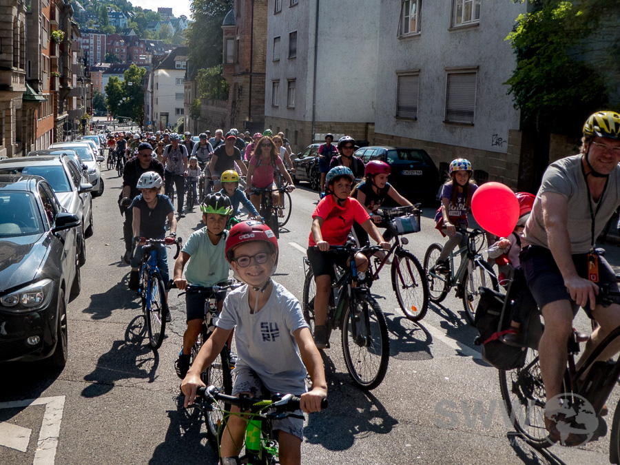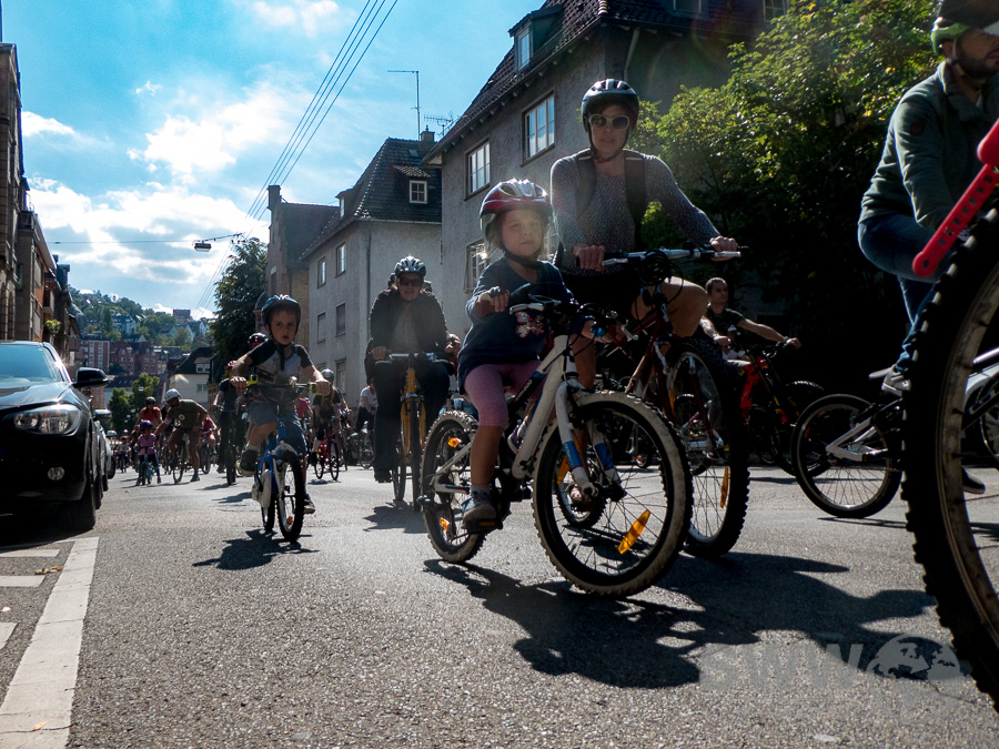 Zur ersten Kidical Mass in Stuttgart hat die Initiative Radentscheid Stuttgart (link) gemeinsam mit der Initiative Zweirat am Samstag (15.9.) eingeladen. Pünktlich um 14 Uhr ging es am Feuersee in Stuttgart auf die rund fünf Kilometer lange Strecke. „Damit starten wir vom gleichen Platz wie die große criticalmass“, so Thijs Lucas, einer der Verantwortlichen für die Kidical Mass.