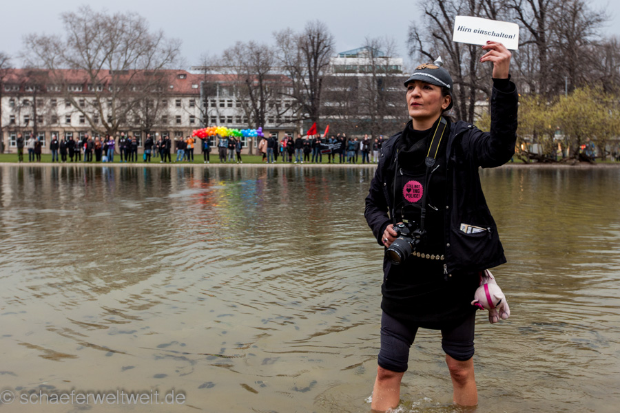 Dafür wurde kräftig gegen Gleichstellung und Gleichberechtigung gewettert. “Ich habe zwar nichts gegen Schwule und Lesben, aber …” ist der diskriminierende Tenor dieser Veranstaltung. Die Frage ist nicht, ob man für oder gegen sexuelle Vielfalt ist, denn diese Vielfalt existiert, ist real, ist gesellschaftliche Wirklichkeit. Die Frage ist, wie man mit dieser Vielfalt umgeht und ob man die christlich-humanistischen Werte unserer Gesellschaft leben und verwirklichen möchte oder ob man in irrationale, dumpfe Abgrenzungsgefechte verfällt. Wollen wir eine gleichberechtigte, eine gerechte, eine offene Gesellschaft sein oder nicht? Dass es nicht “ein bisschen Gleichberechtigung” gibt, sollte gerade diesen Müttern in zartrosa und diesen Vätern in hellblau klar sein, denn genauso wenig gibt es “ein bisschen schwanger”. Entweder oder. Gleichberechtigung oder Diskriminierung. Ja oder nein. Zumindest die Veranstalter haben sich entschieden: für Diskriminierung, gegen Gleichstellung, gegen Akzeptanz und gegen eine vielfältige, gegen eine bunte, ja gegen eine offene Gesellschaft. So etwas hatten wir schon einmal – nur damals kamen diese Menschen nicht in zartrosa und hellblau daher. Obwohl … Wer diese Farben mischt, erhält am Ende doch wieder das altbekannte, ziemlich hässliche braun.